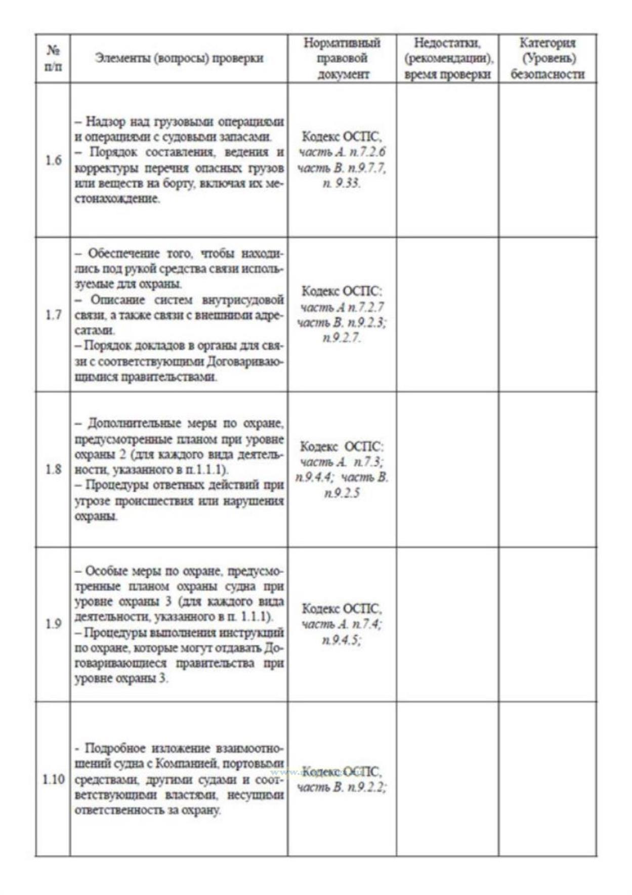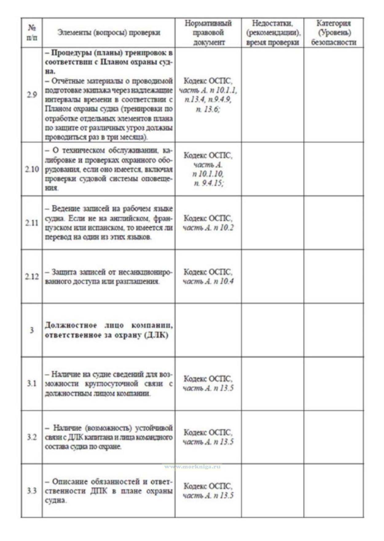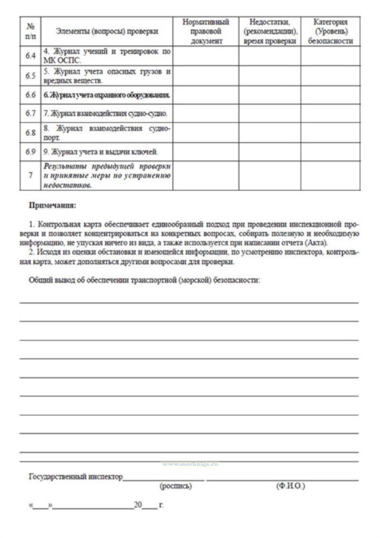 См. также Контрольную карту инспекции (инспекционной проверки) по вопросам обеспечения транспортной безопасности портовых средств.