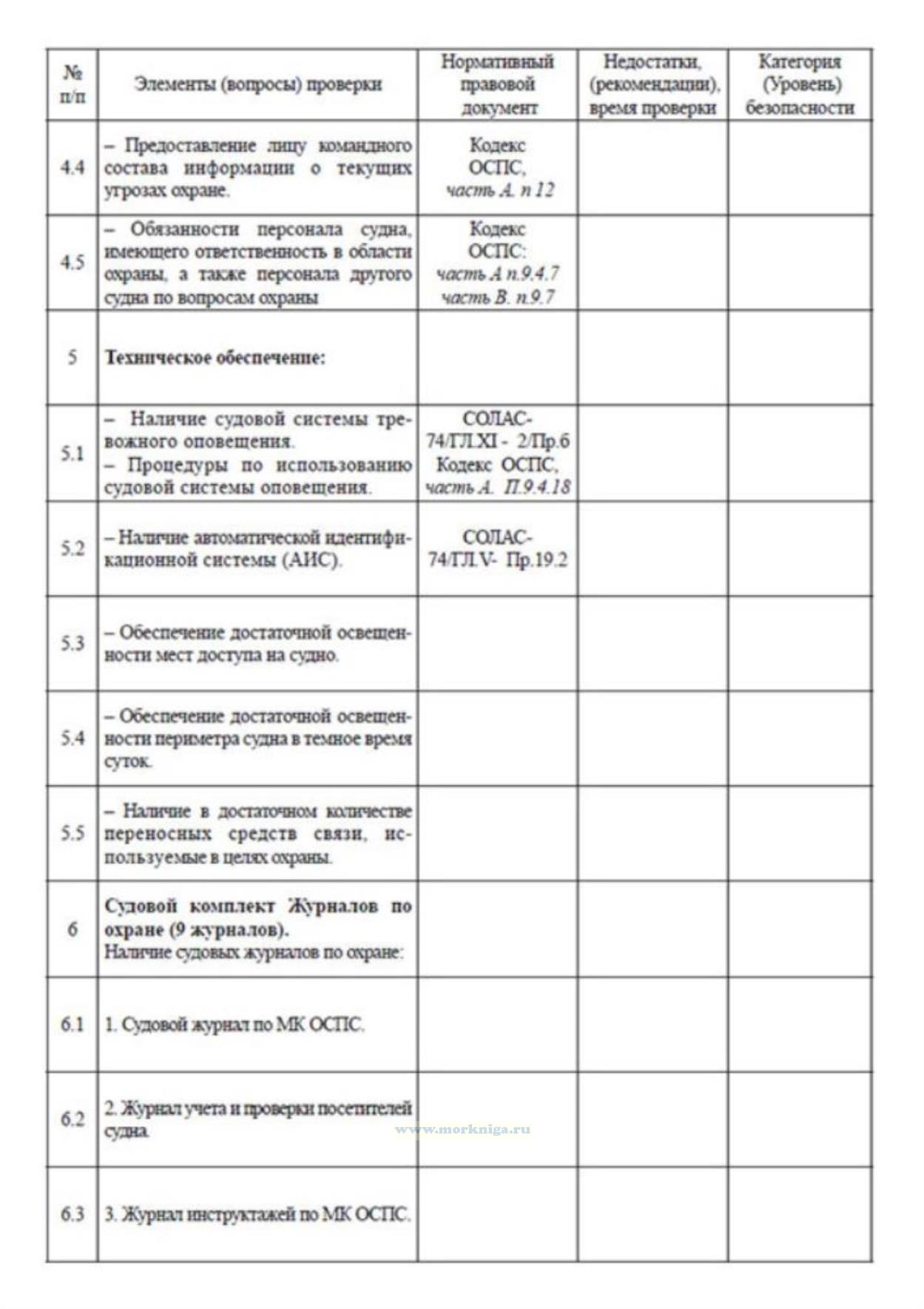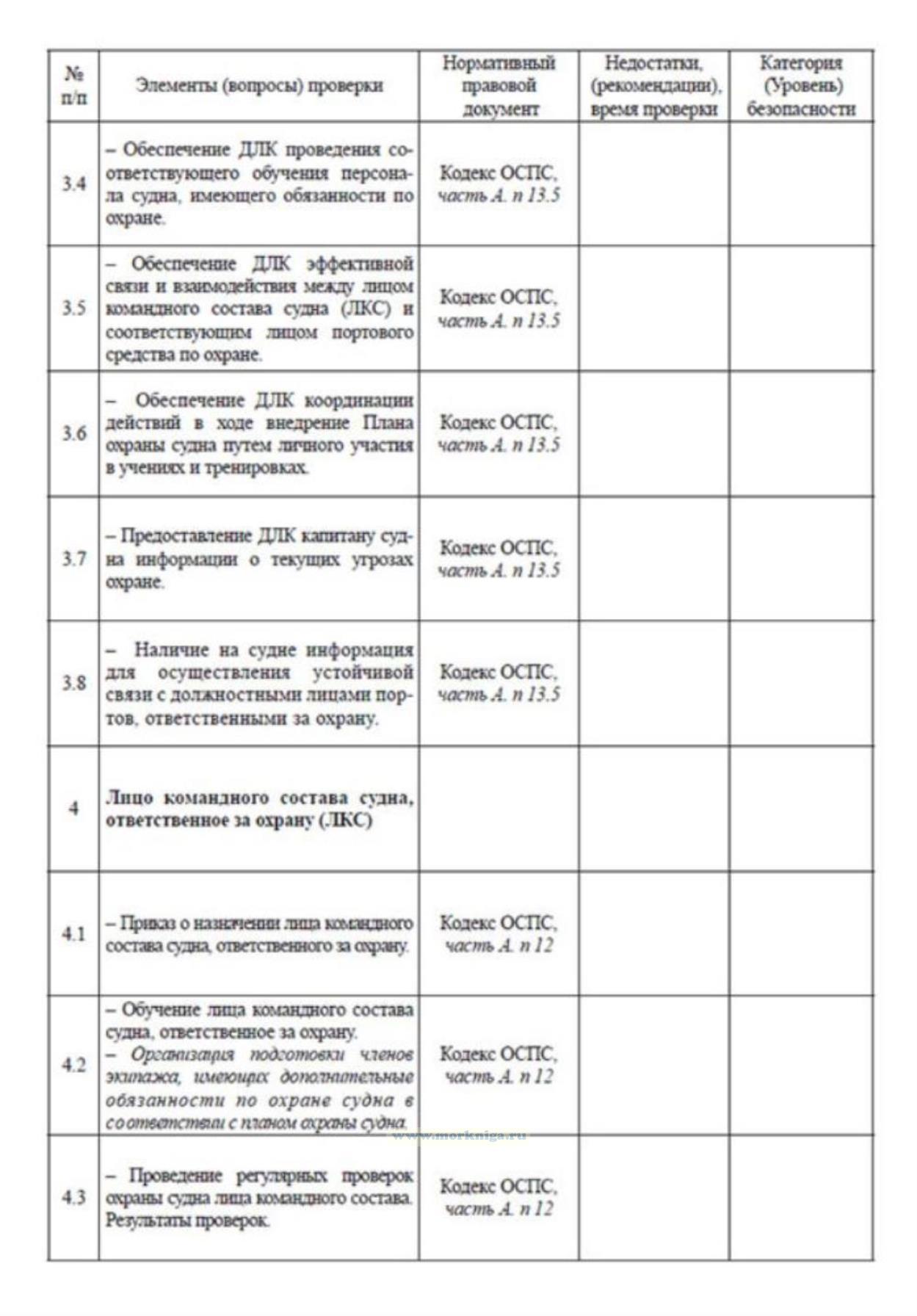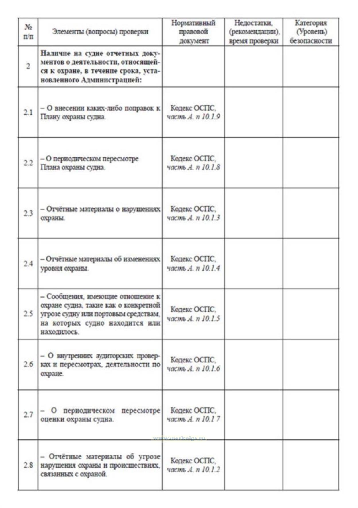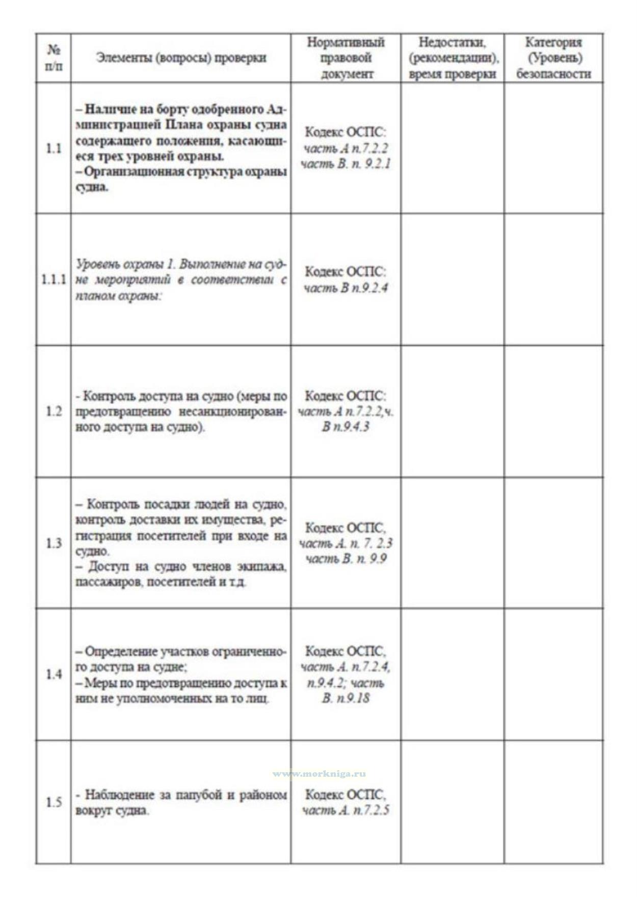 См. также Контрольную карту инспекции (инспекционной проверки) по вопросам обеспечения транспортной безопасности портовых средств.