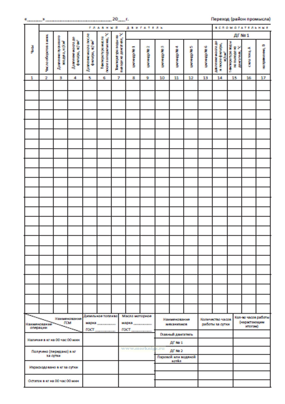 Машинный журнал теплохода. Форма М-9 имеет графы: