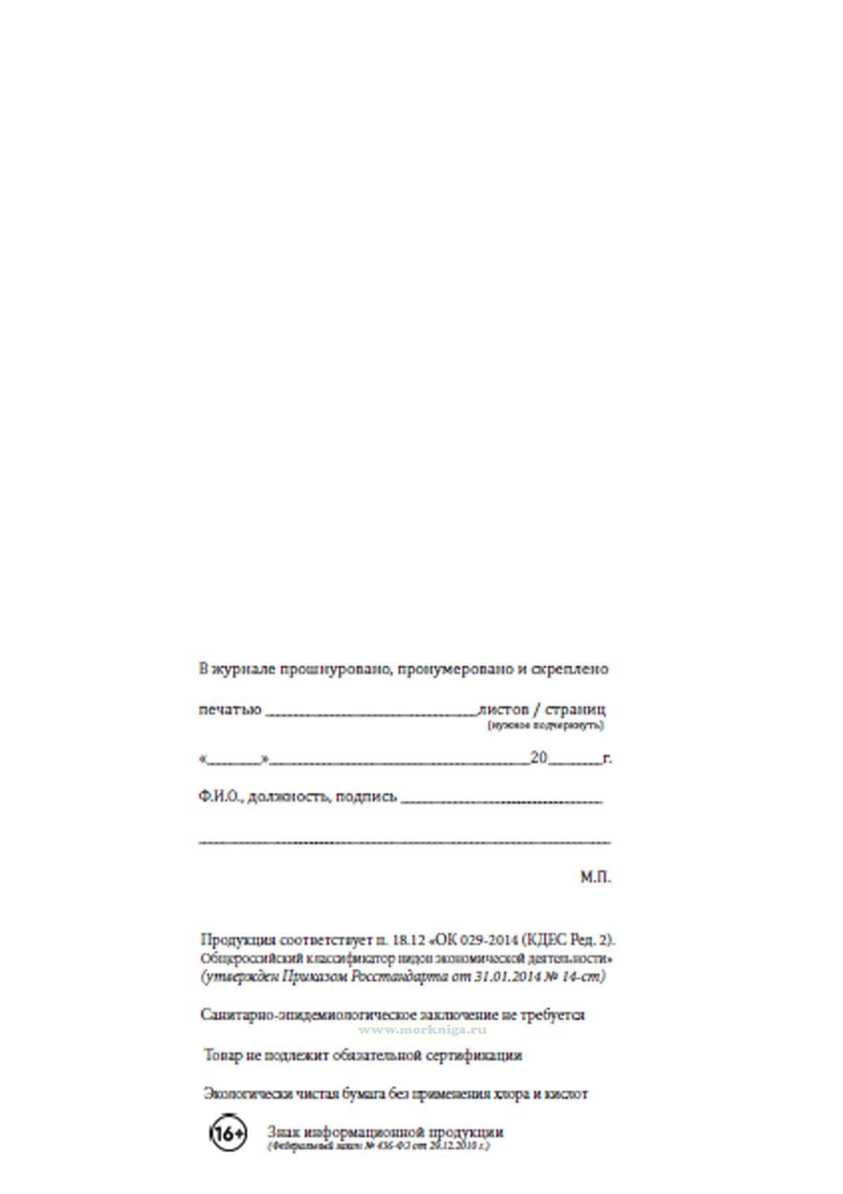 Журнал рассчитан на ведение его в течение одного месяца. В начале журнале должны бьиь помещены настоящие Правила.