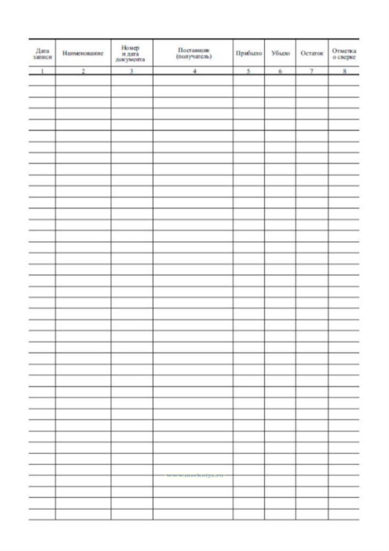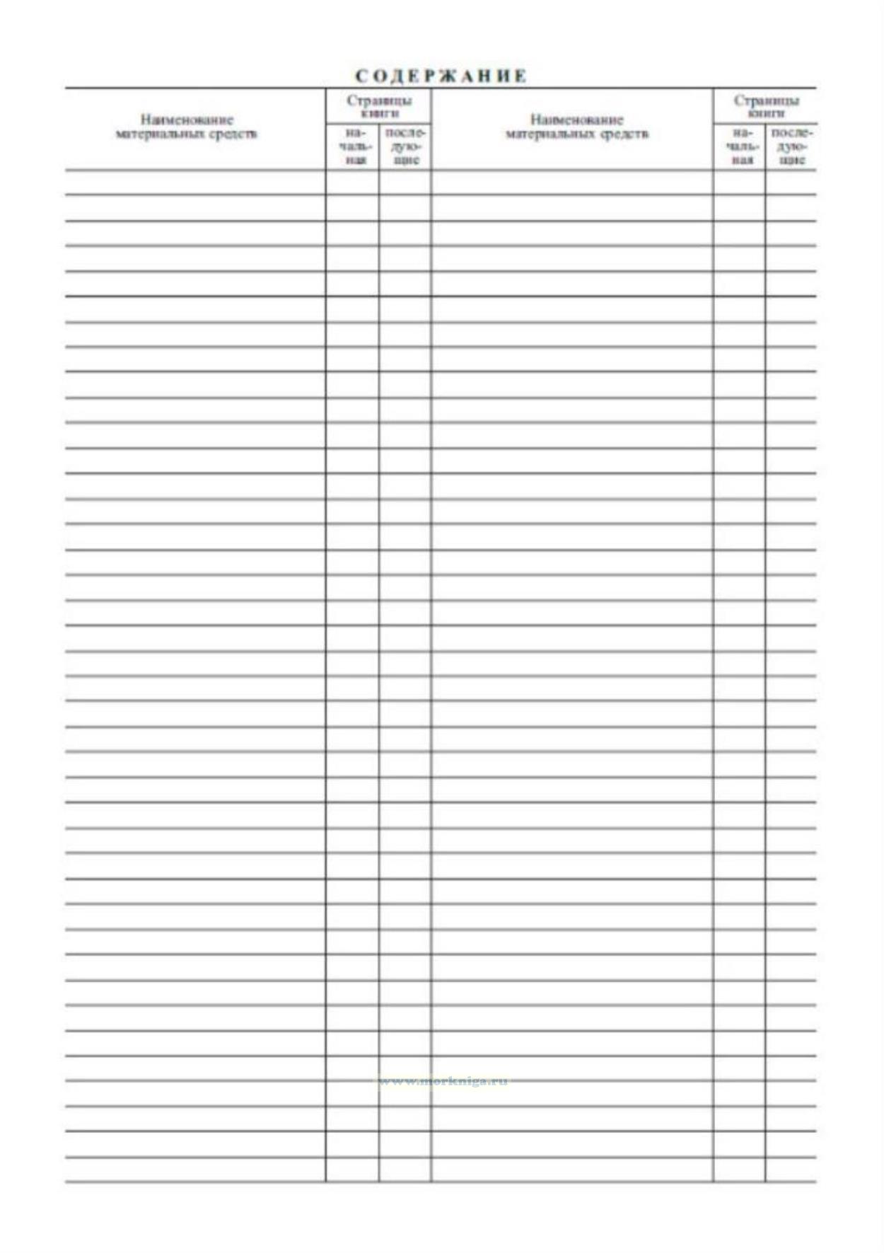 Книга учета наличия и движения материальных средств (для судна) имеет разделы и графы:
