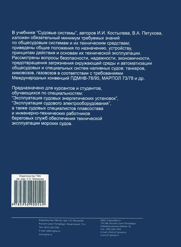 Рассмотрены вопросы безопасности, надёжности, экономичности, предотвращения загрязнения окружающей среды и автоматизации общесудовых и специальных систем наливных судов: танкеров, химовозов, газовозов.