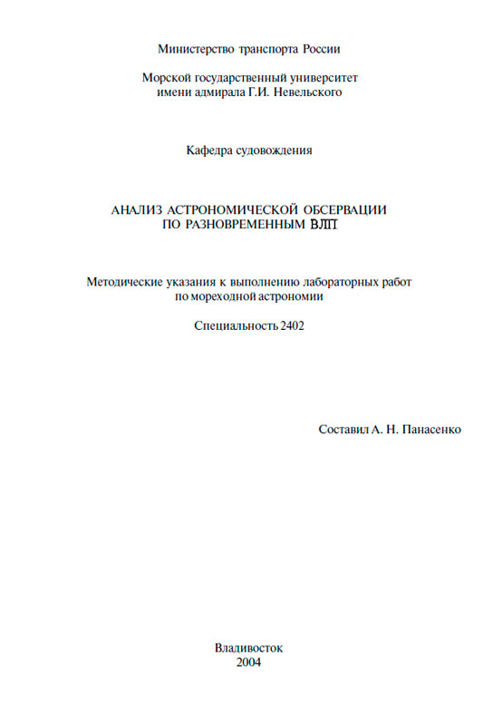 Настоящие методические указания предназначены для проведения анализа по разновременным который существенно отличается от анализа обсерваций по одновременным ВЛП других светил.