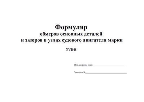 Формуляр обмеров основных деталей и зазоров в узлах судового двигателя марки NVD 48. См. такжеЭксплуатация и ремонт двигателей типа NVD-48, NVD-36 и NVD-24