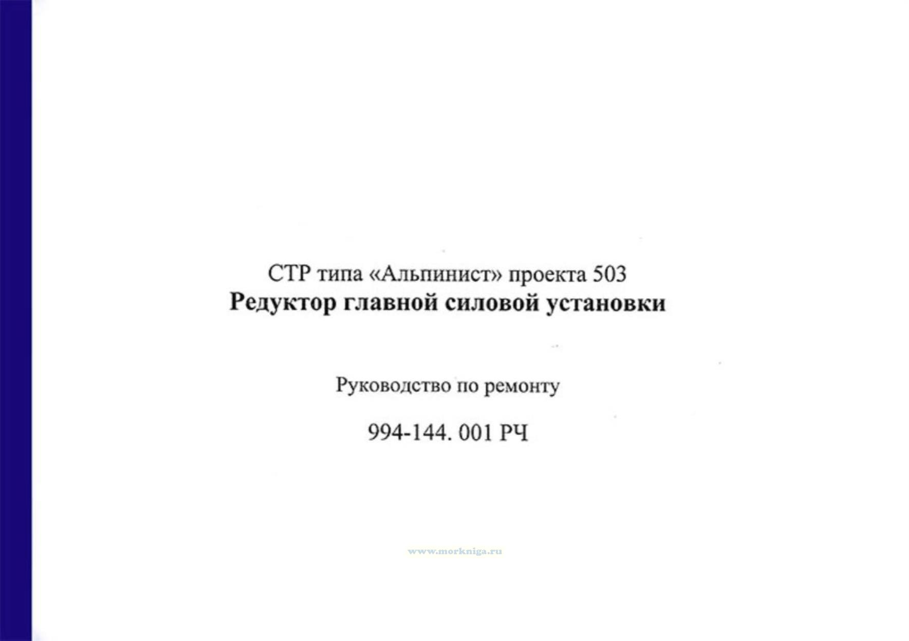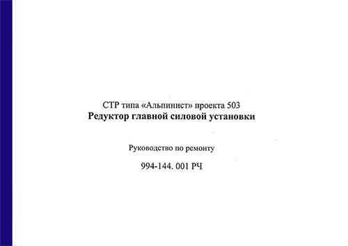 Настоящее техническое руководство (Р4) распространяется на ремонт комплекса редукторов и муфт главной силовой установки СТР типа "Альпинист" пр.503.