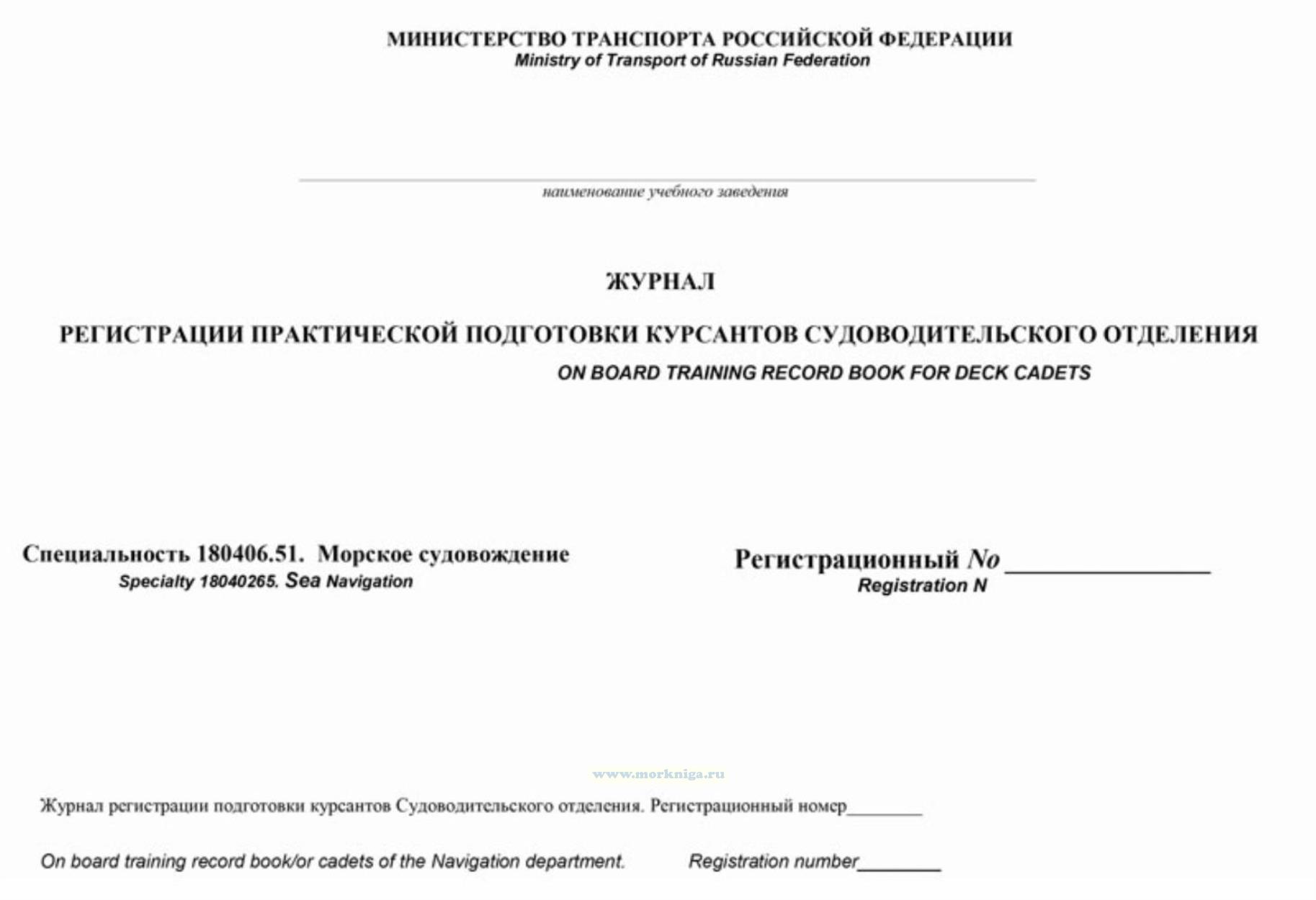 Журнал регистрации подготовки курсантов Судоводительского отделения. Регистрационный номер