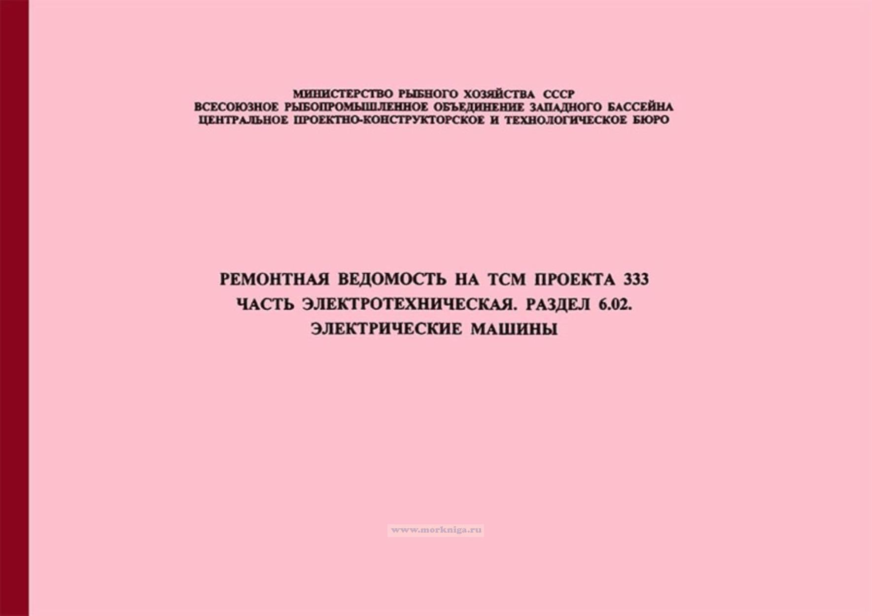 Настоящая индивидуальная (типовая) ремонтная ведомость (ТИРВ) разработана а соответствии с техническим заданием, утвержденым Запрыбой 10.11.84 г., и методические указаниями М032-231.003 (Таллин, ЦИТИО, 1980) на заводские ремонты электрических машин судов TCМ проекта 333 типа "Орленок". При разработке учтены замечания и предложения НПО ЭРА, утвержденные 14.03.85 г.