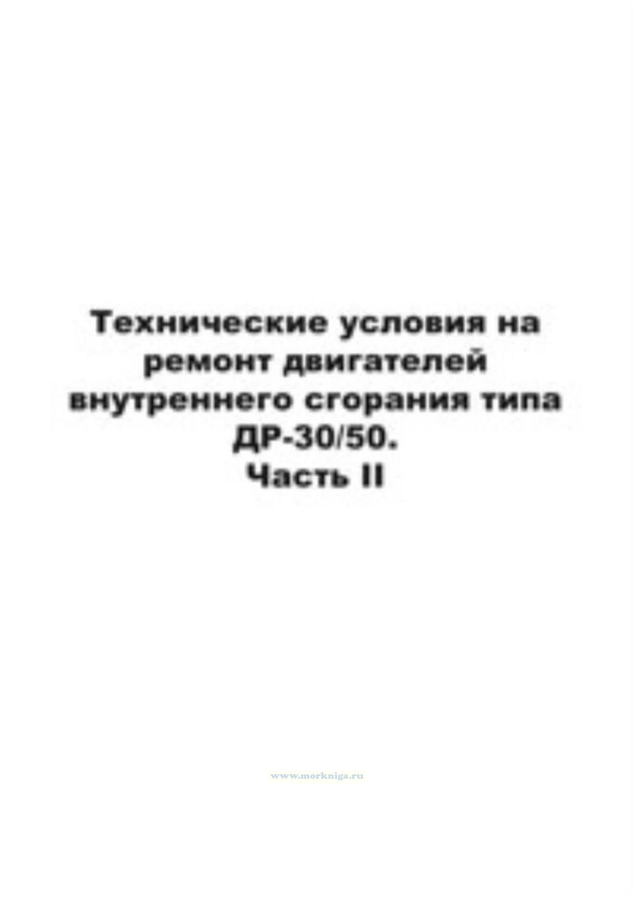 Временные технические условия на дефектацию и ремонт двигателей 8ДР 30/50 и 8ДР 30/50-З разработаны по договору с Бакинским судоремонтным заводом имени Парижской Коммуны применительно к ее производственным условиям ремонта ДВС. Технические условия выполнены в виде альбома, содержащего данные по номинальным и предельно - допустимым размерам деталей , и рекомендуемым монтажным и предельно допустимым зазорам в сочленениях, а также технические требования на ремонт деталей и узлов двигателя.