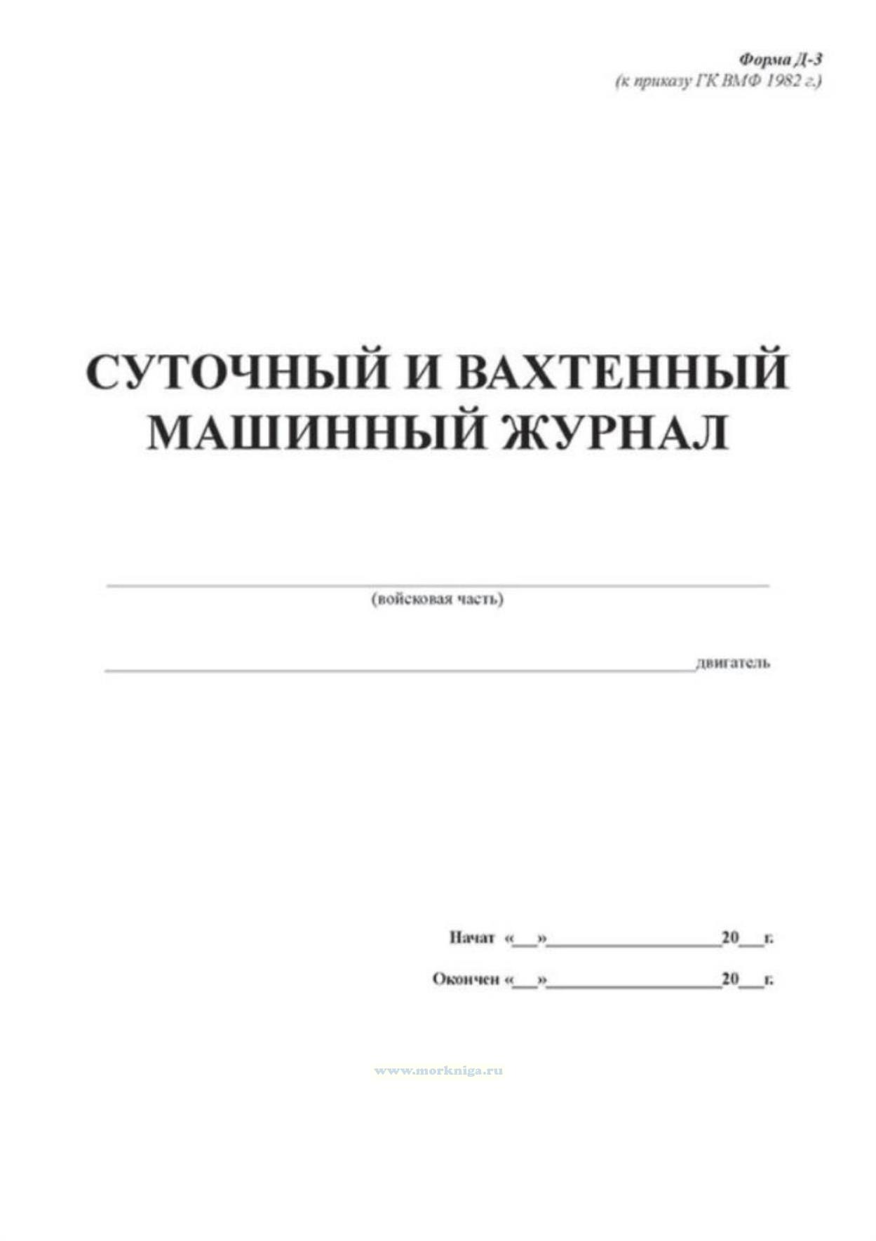 Форма Суточного и вахтенного машинного журнала (Д-3) утверждена приказом ГК ВМФ 1982 г.