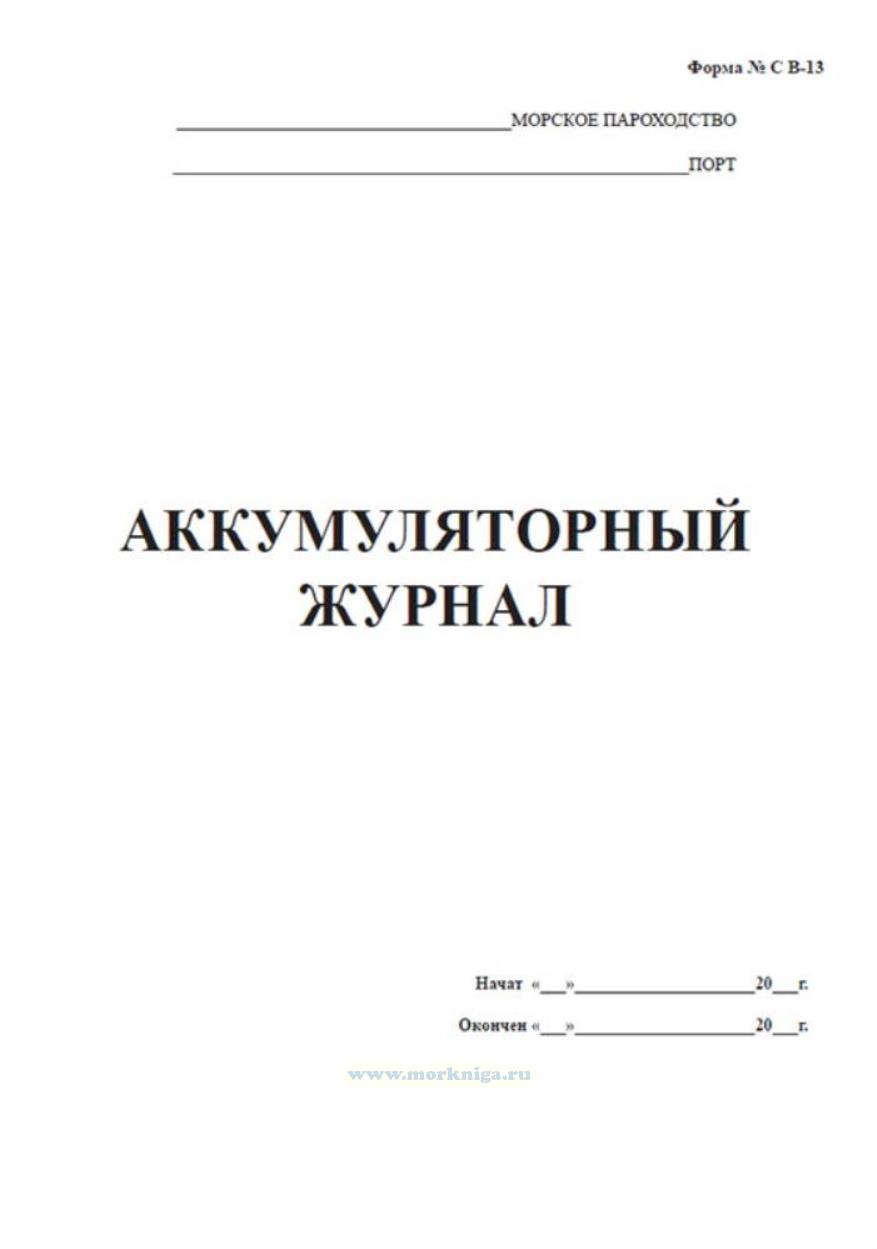 Аккумуляторный журнал форма СВ-13 входит в Перечень документации по радиосвязи и электронавигации, которую должны иметь на борту морские суда и суда смешанного (река-море) плавания, оснащенные оборудованием радиосвязи и радионавигации ГМССБ.