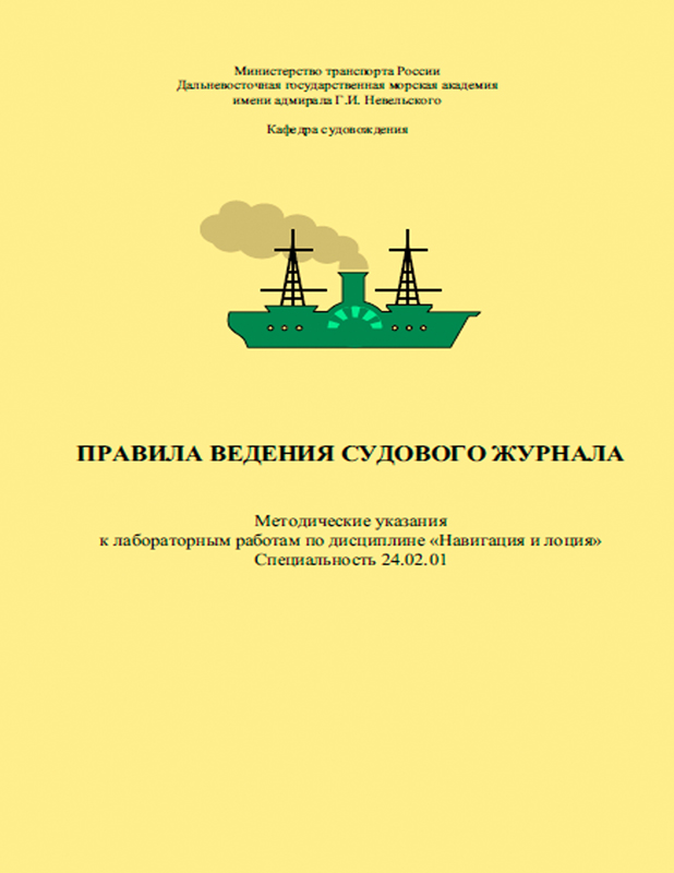 Настоящее издание методических указаний по ведению судового журнала разработано и составлено в соответствии с утвержденным приказом ММФ СССР от 28 декабря 1988 г. № 173 (форма Э-1в), Рекомендациями по организации штурманской службы на судах Минморфлота СССР (РШС-89) , Правилами ведения судового журнала, с учетом рекомендаций и предложений преподавателей кафедры судовождения ДВГМА им. адм. Г.И. Невельского.