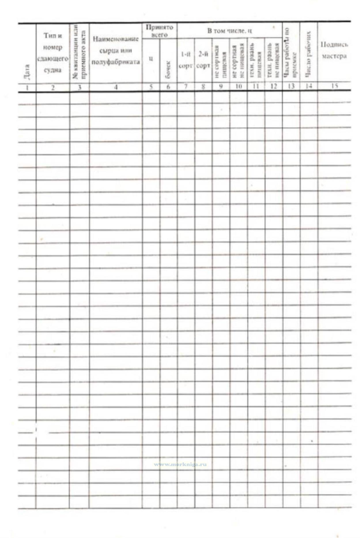 1. Журнал учета принятого сырца и полуфабриката является документом, отражающим ассортимент, количество и сортность сырца и полуфабриката, принятых для обработки с других судов.