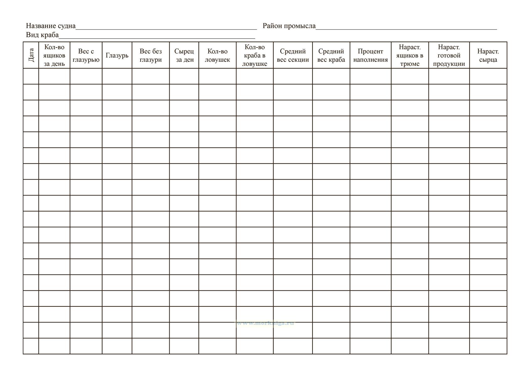 Журнал учета выпуска мороженной продукции (крабы) имеет графы: