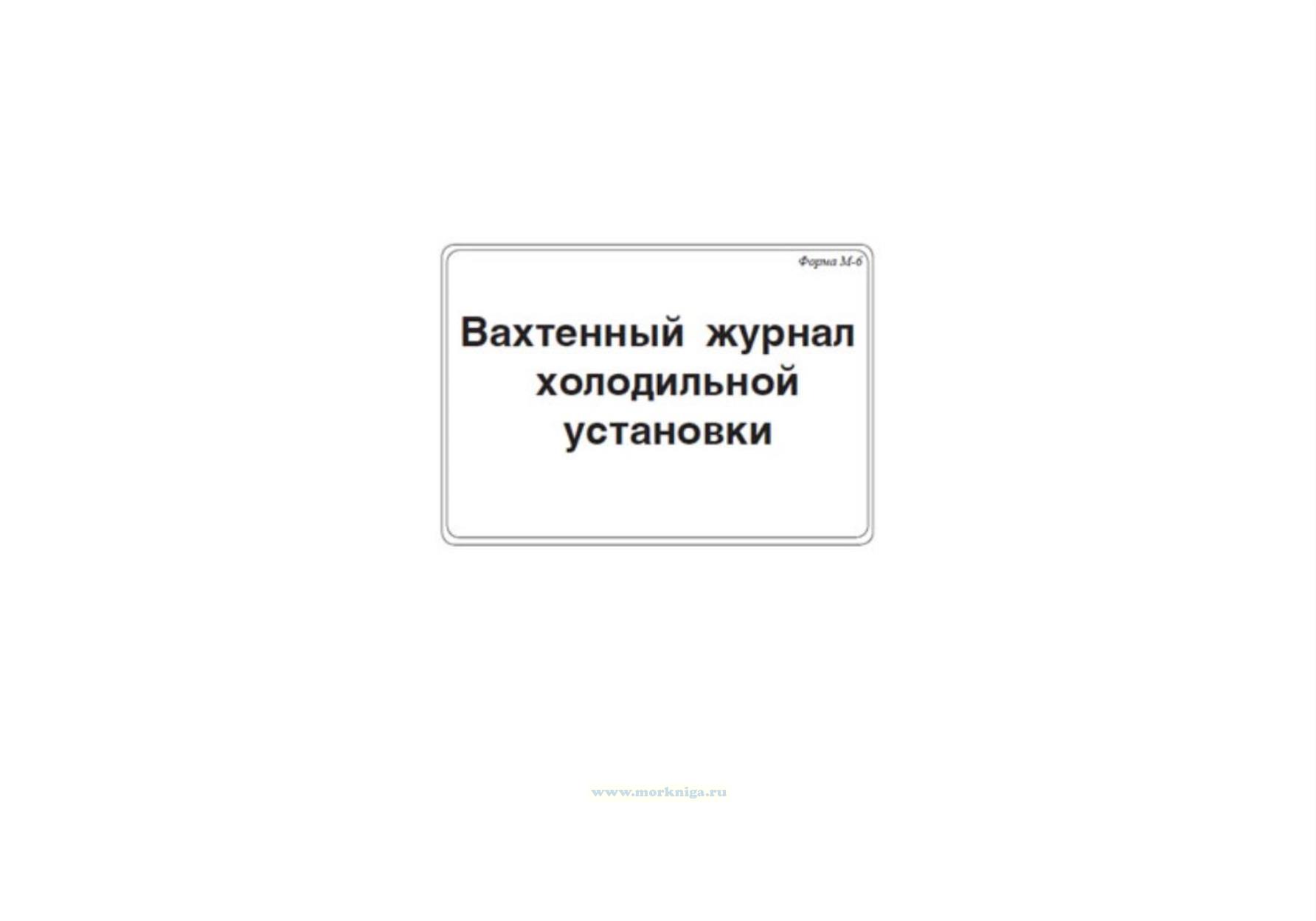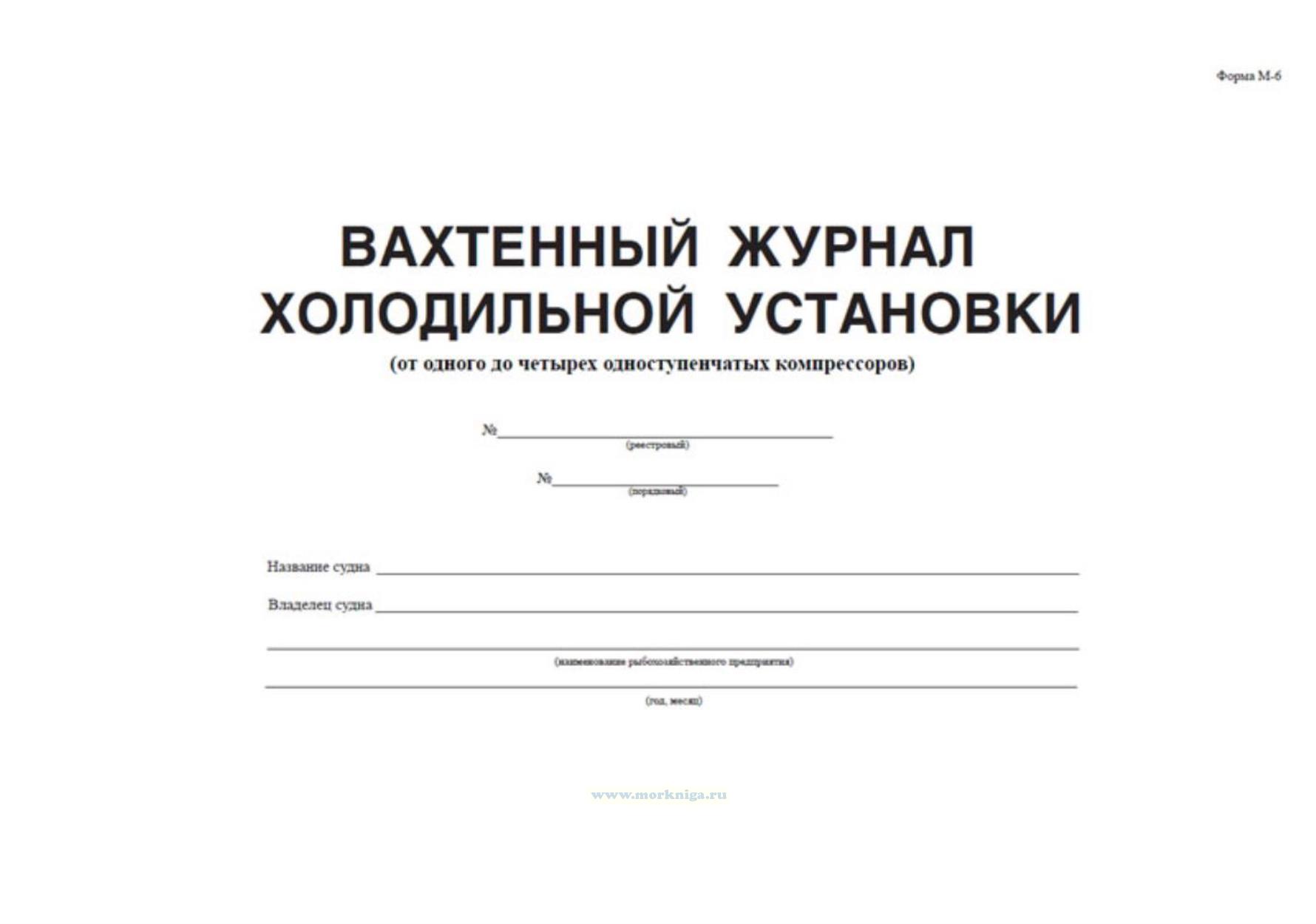 Вахтенный журнал холодильной установки (от одного до четырех одноступенчатых компрессоров) ( форма М-6) входит в Перечень документов, которые должны находиться на борту судов рыбной промышленности РФ.