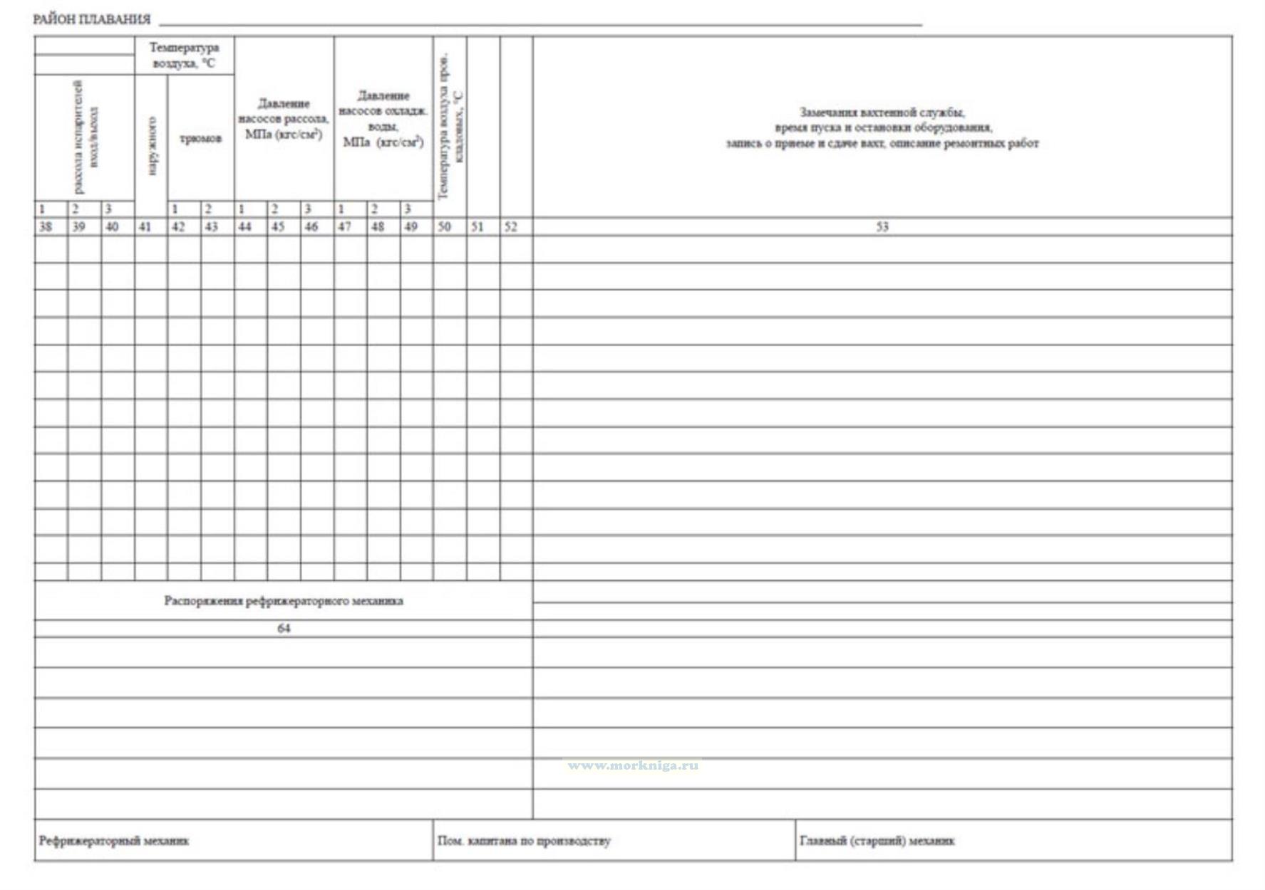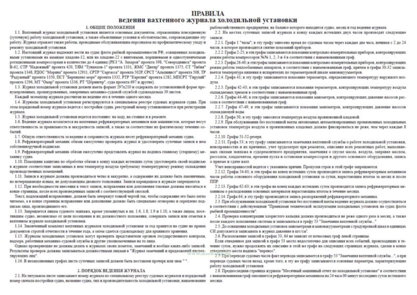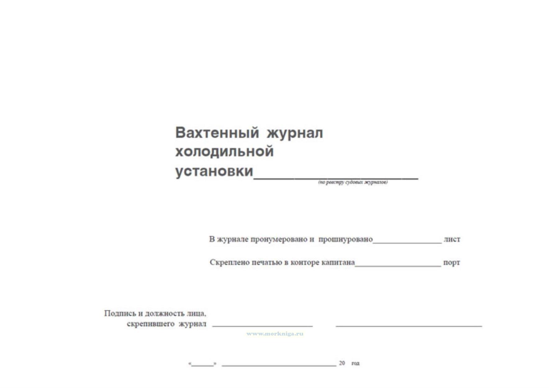 Журнал холодильной установки должен содержать по установленной форме пронумерованных, прошнурованных, заверенных механико-судовой службой судовладельца 39 листов.