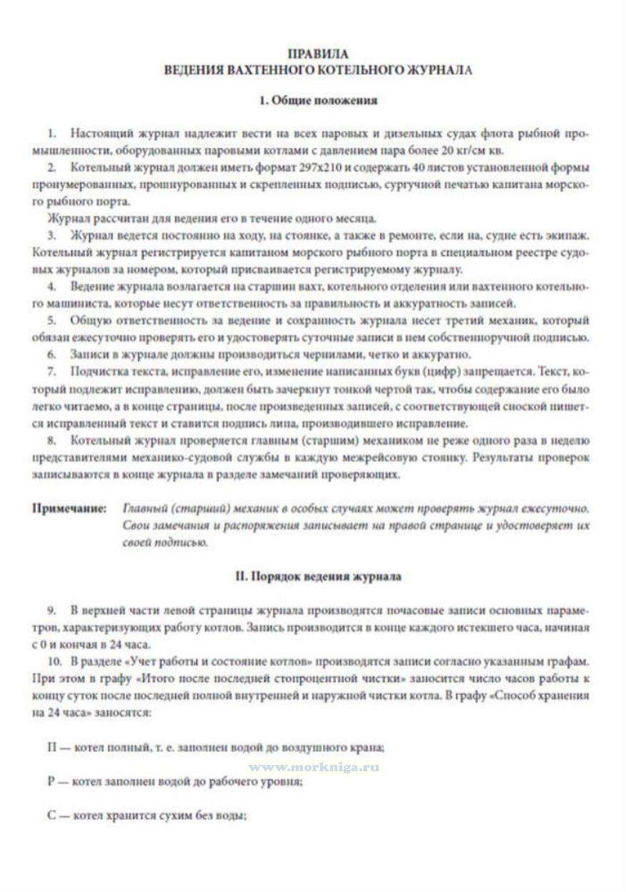 1. Настоящий Вахтенный котельный журнал надлежит вести на всех паровых и дизельных судах флота рыбной промышленности, оборудованных паровыми котлами с давлением пара более 20 кг/см кв.