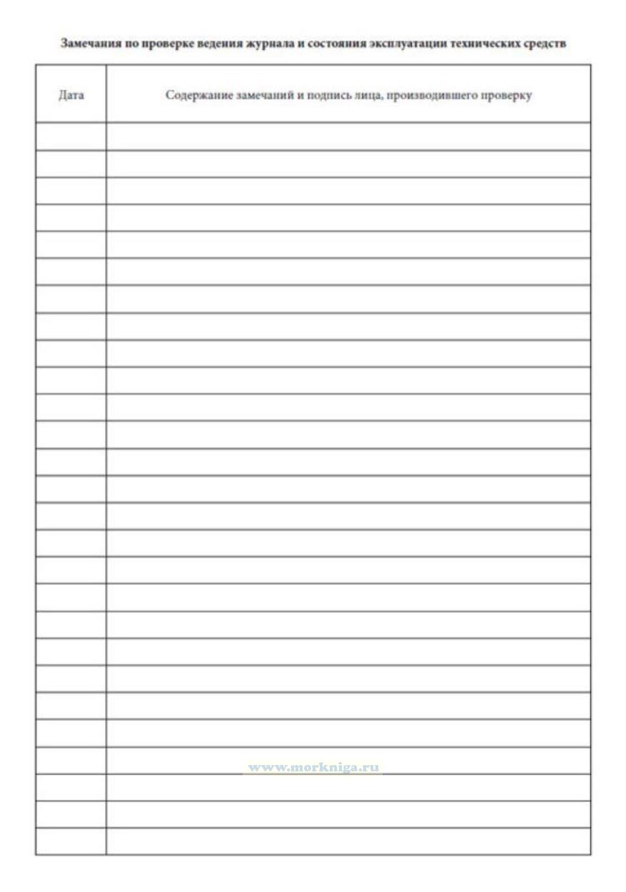 8. Котельный журнал проверяется главным (старшим) механиком не реже одного раза в неделю представителями механико-судовой службы в каждую межрейсовую стоянку. Результаты проверок записываются в конце журнала в разделе замечаний проверяющих.