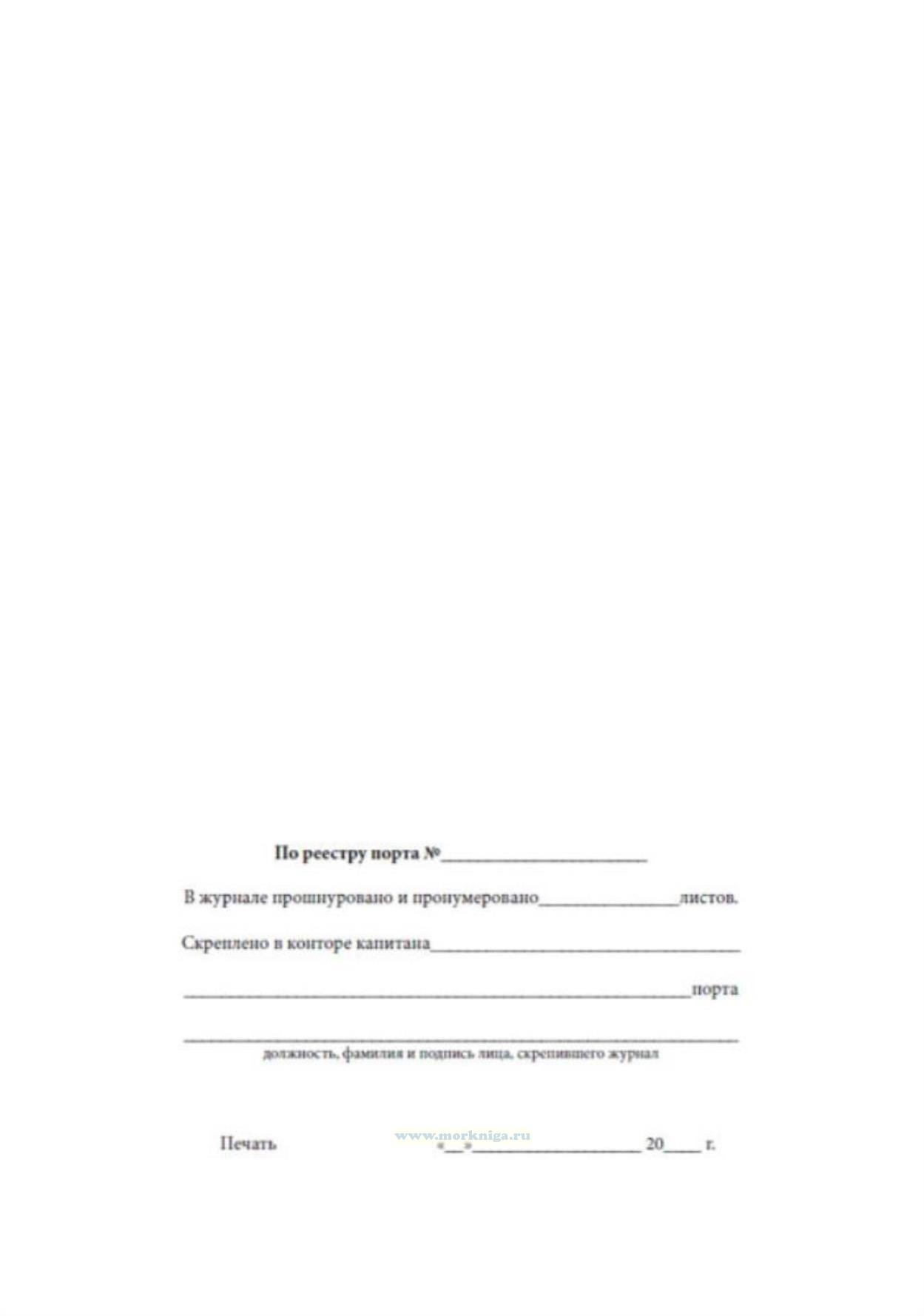 3. Журнал ведется постоянно на ходу, на стоянке, а также в ремонте, если на, судне есть экипаж. Котельный журнал регистрируется капитаном морского рыбного порта в специальном реестре судовых журналов за номером, который присваивается регистрируемому журналу.