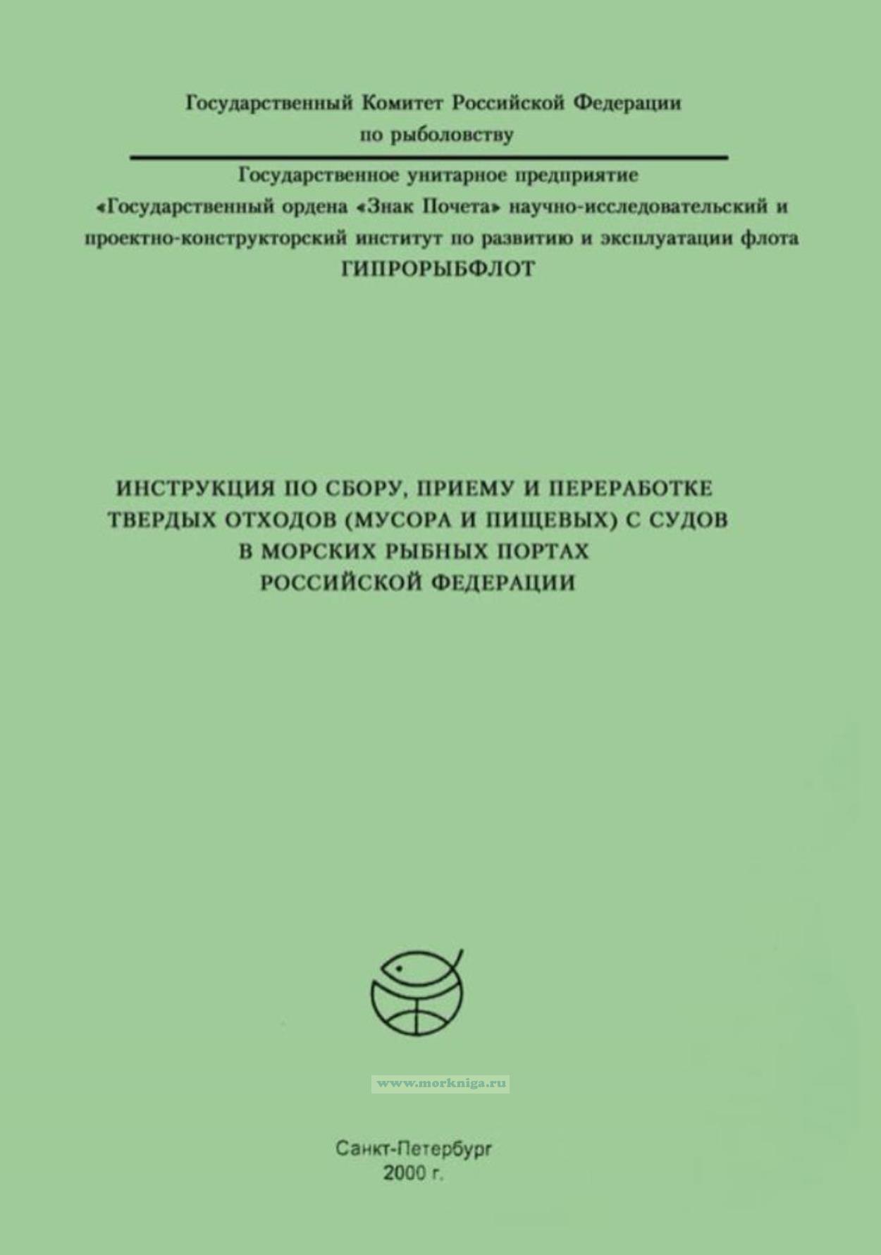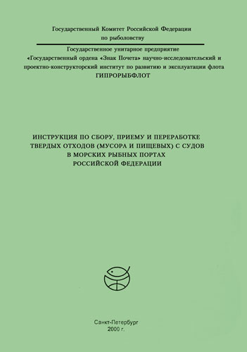 "Инструкция по сбору, приему и переработке твердых отходов (мусора и пищевых) с судов в морских рыбных портах Российской Федерации" введена в действие с 1 сентября 2000 г. приказом Государственного Комитета Российской Федерации по рыболовству от 29 мая 2000 г. № 167