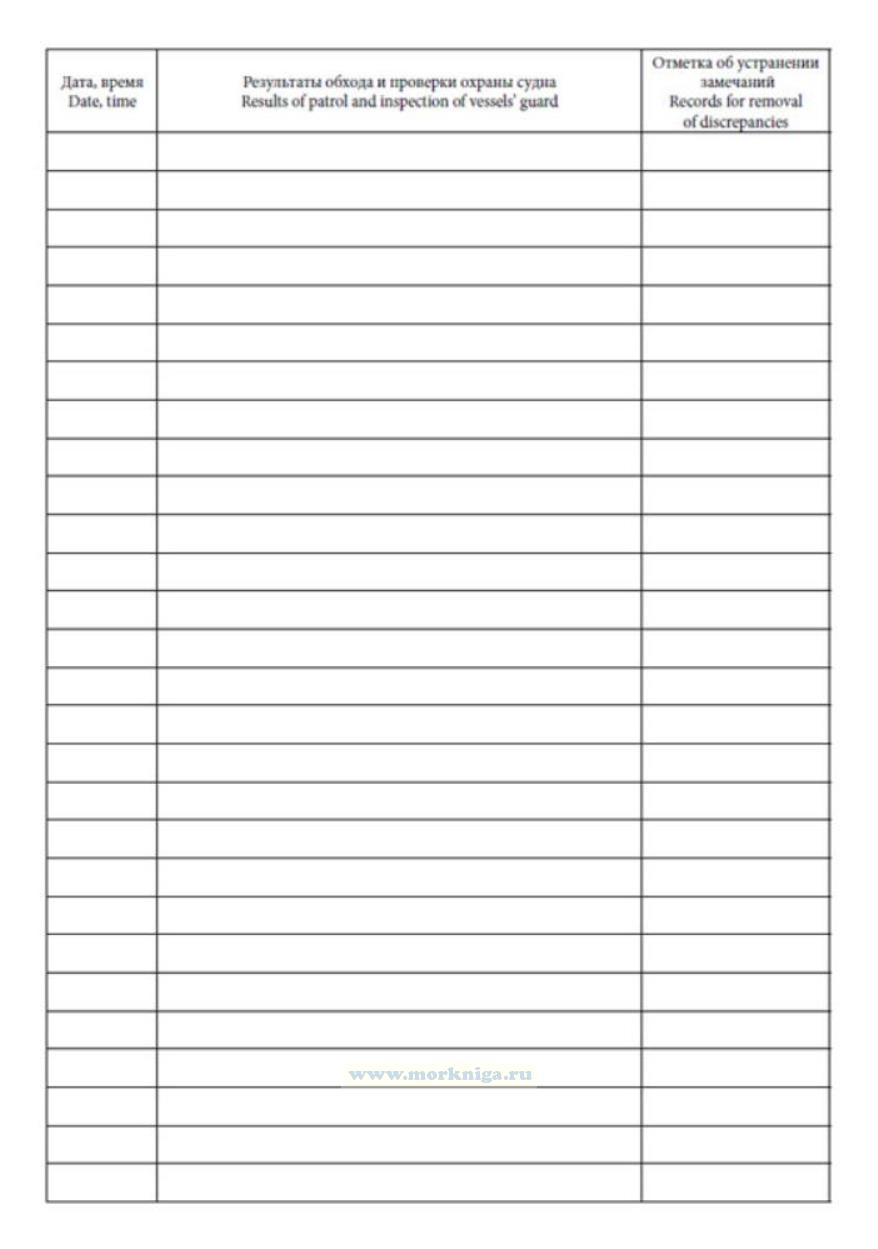 Результаты обходов участков ограниченного доступа и проверки охраны судна заносят в специальный журнал, где фиксируют дату и время обхода.
