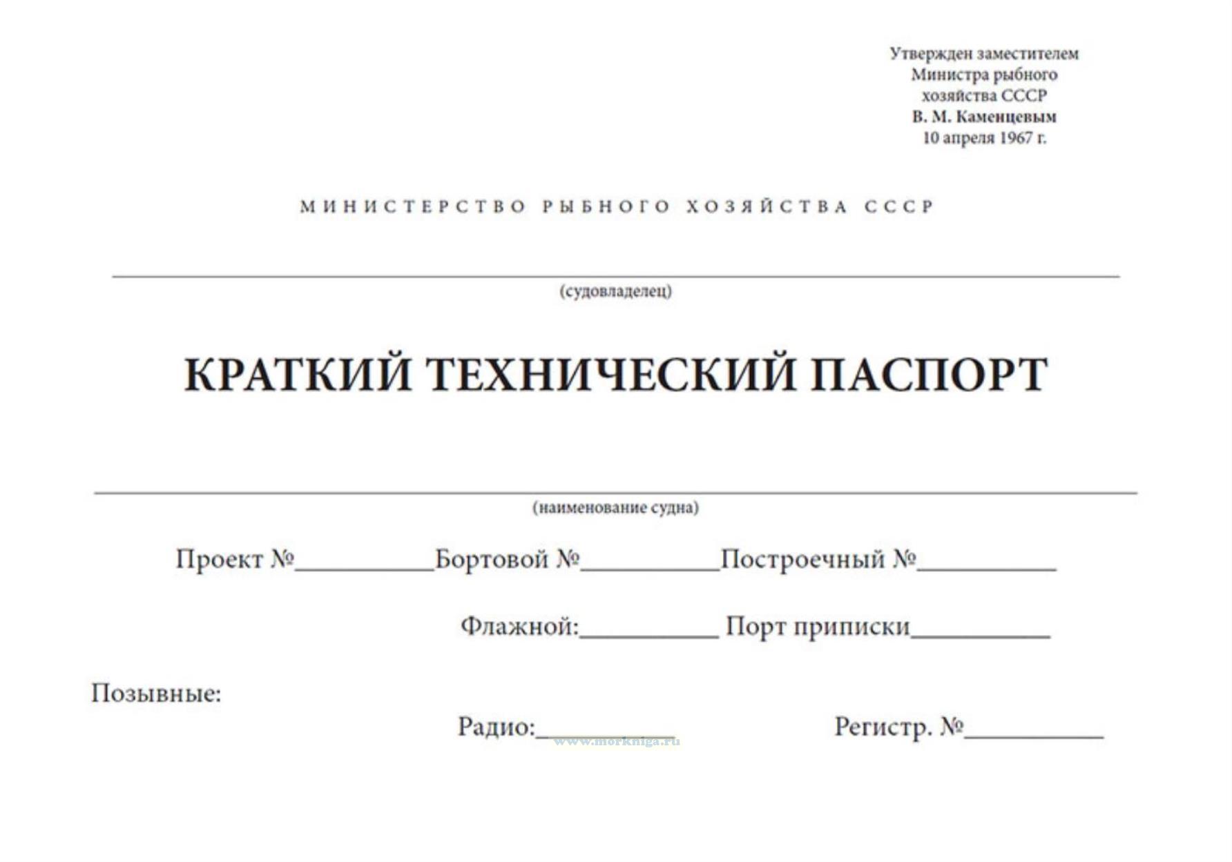 Инструкция по заполнению и ведению краткого технического паспорта судна