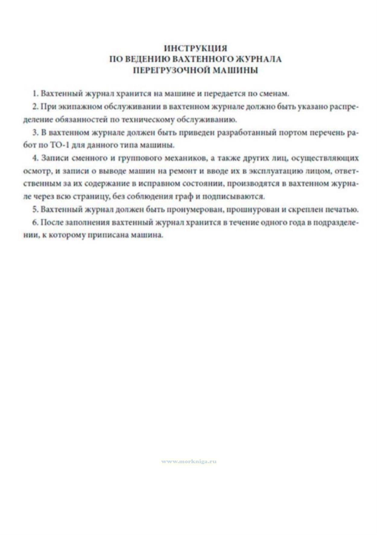 Инструкция по ведению вахтенного журнала перегрузочной машины: