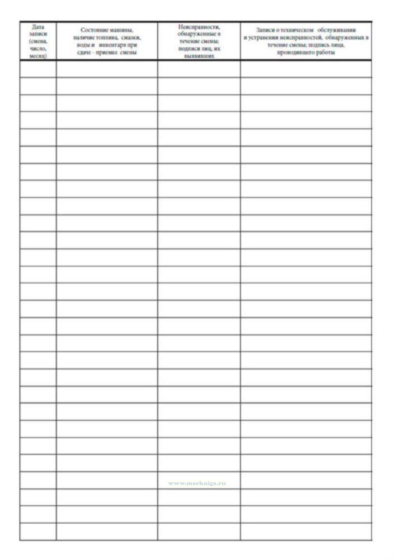 - Записи о техническом обслуживании и устранении неисправностей, обнаруженных в течение смены; подпись лица, проводившего работы