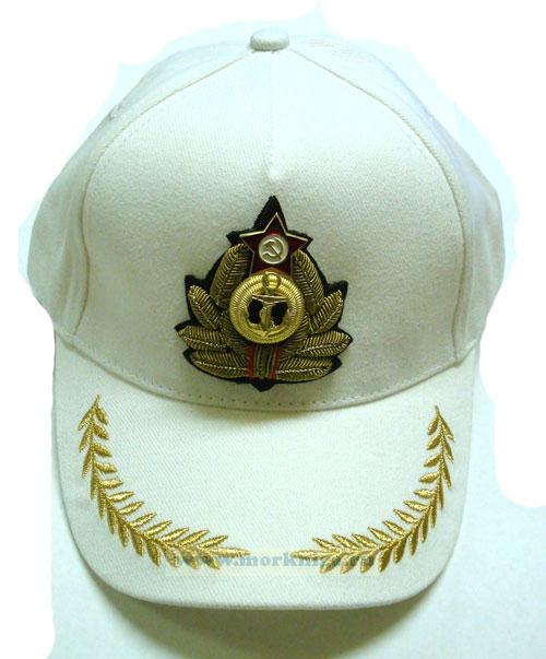 На бейсболке - краб "ВМФ СССР" ручной вышивки, на козырьке вышиты дубы.