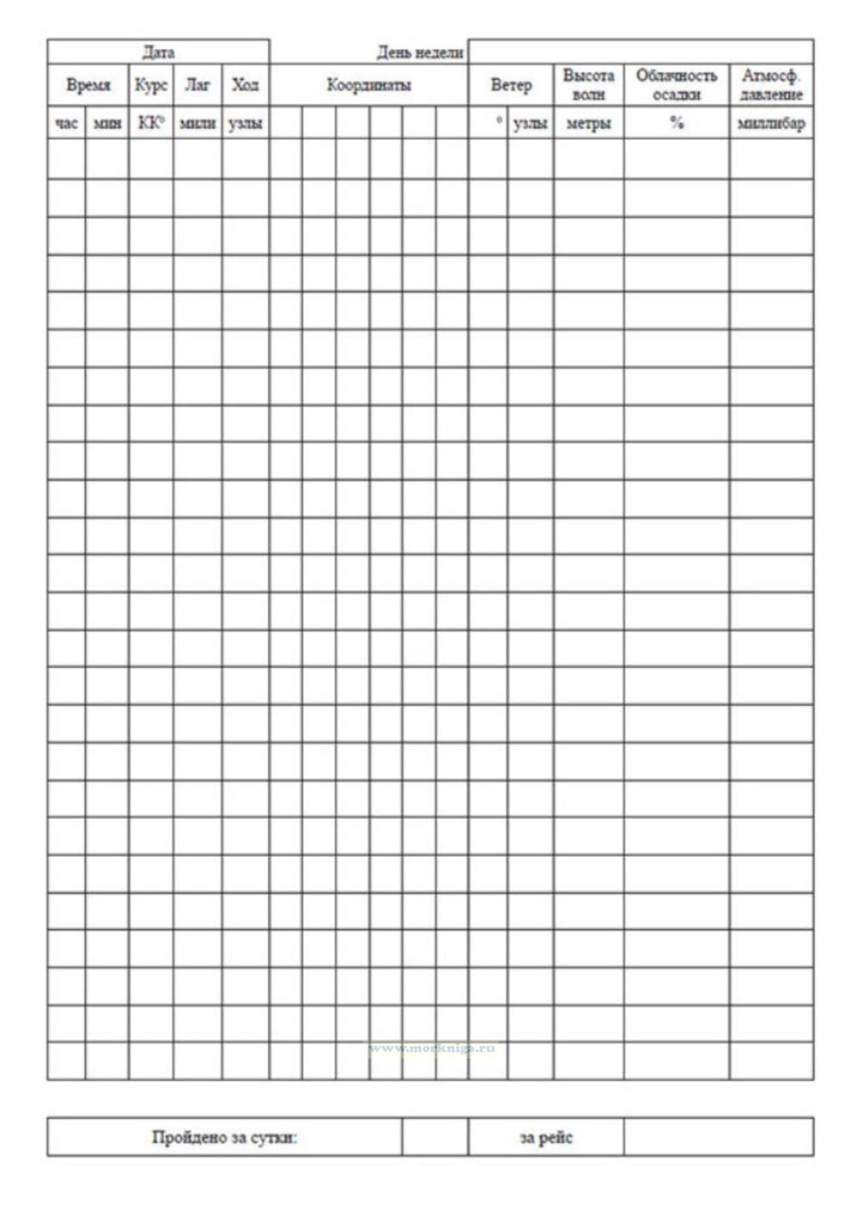 По окончании каждого перехода капитан (штурман) записывает пройденное за время перехода расстояние по генеральному курсу и фактическое число ходовых часов (с учетом лавировки), среднюю скорость по генеральному курсу и по прокладке.