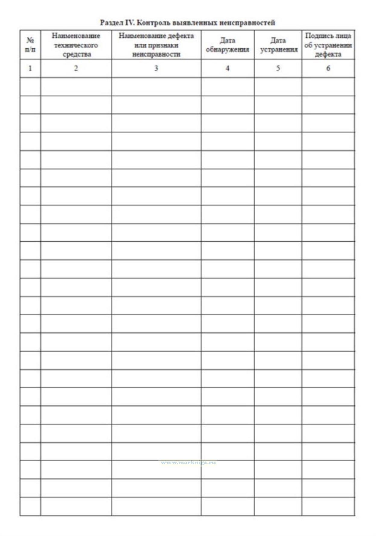 Раздел IV. Контроль выявленных неисправностей. Графы: