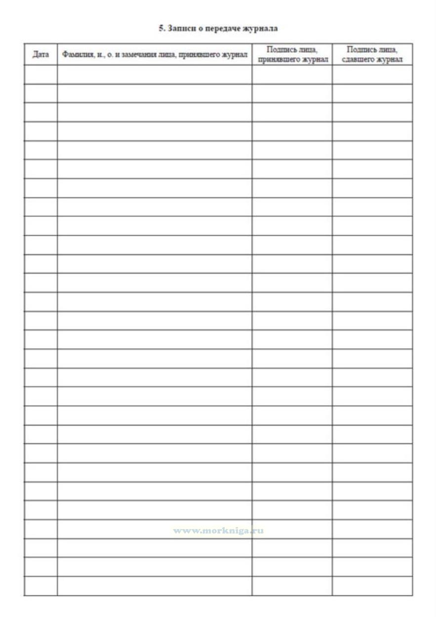 Журнал является судовым учетным документом, ведется в одном экземпляре и хранится на судне в течение всего срока его службы.
