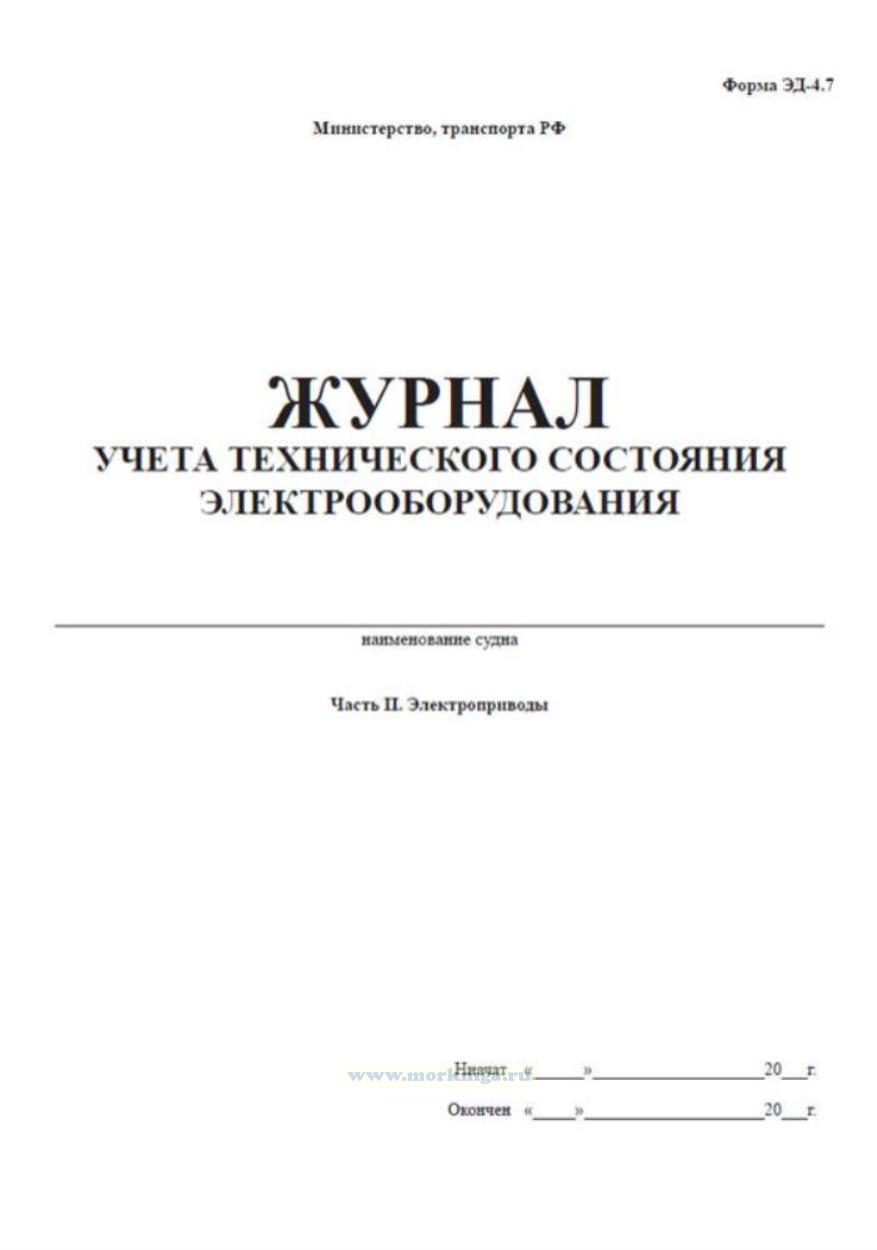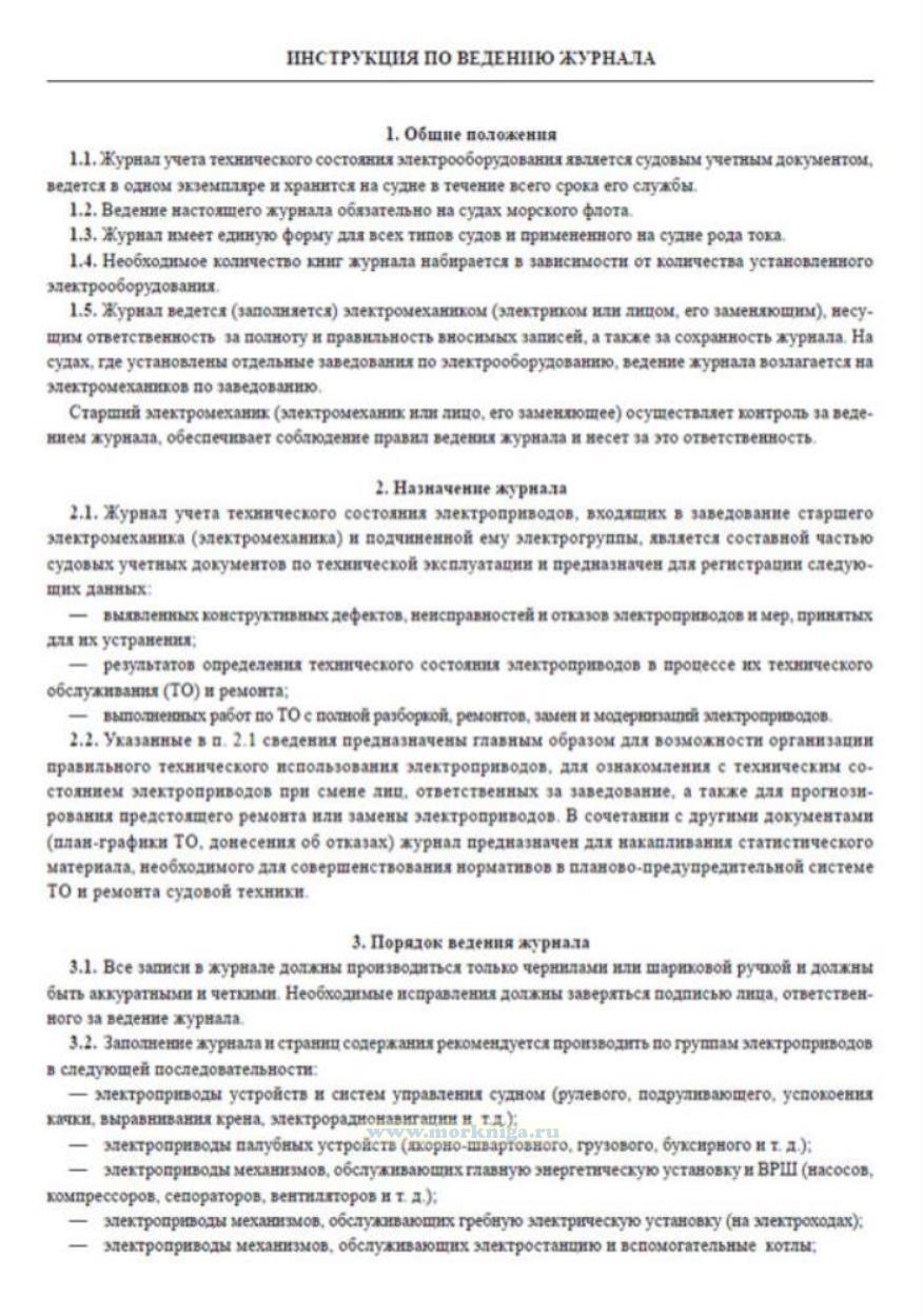 Журнал учета технического состояния электрооборудования является судовым учетным документом, ведется в одном экземпляре и хранится на судне в течение всего срока его службы.