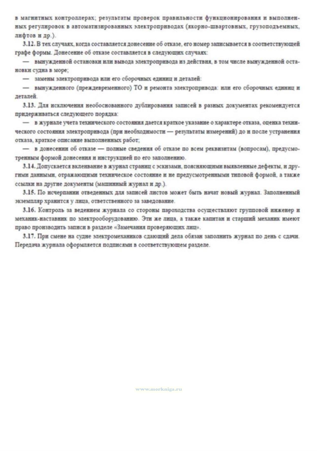 Журнал ведется (заполняется) электромехаником (электриком или лицом, его заменяющим), несущим ответственность за полноту и правильность вносимых записей, а также за сохранность журнала. На судах, где установлены отдельные заведования по электрооборудованию, ведение журнала возлагается на электромехаников по заведованию.