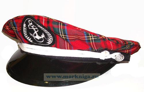 Капитанка с шевроном "Якорь"(красная клетка), пластиковый козырек