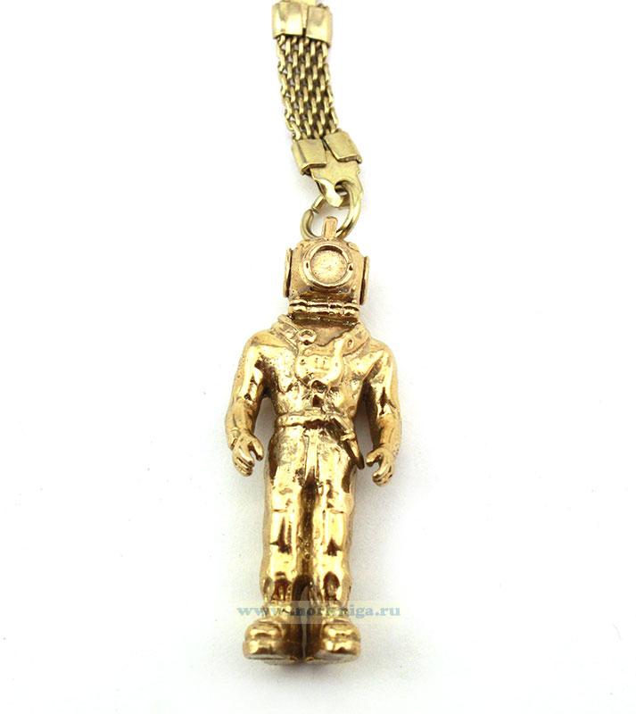 Профессия водолаза является одной из самых трудных и опасных. Погружение под воду на большие глубины требуют смелости и решительности. Материал: латунь Размер водолаза 4,3 х 1,8 см + крепление 6 см Крепление брелока в 2 исполнениях. Сделано в Севастополе