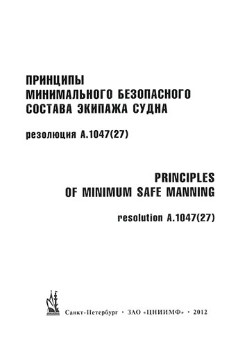 В настоящем издании приведен текст резолюции А. 1047(27) на английском и русском языках, которой Ассамблея ИМО на своей 27-й сессии (21-30 ноября 2011 г.) приняла "Принципы минимального безопасного состава экипажа судна" и отменила резолюции А.890(21) и А.955(23).