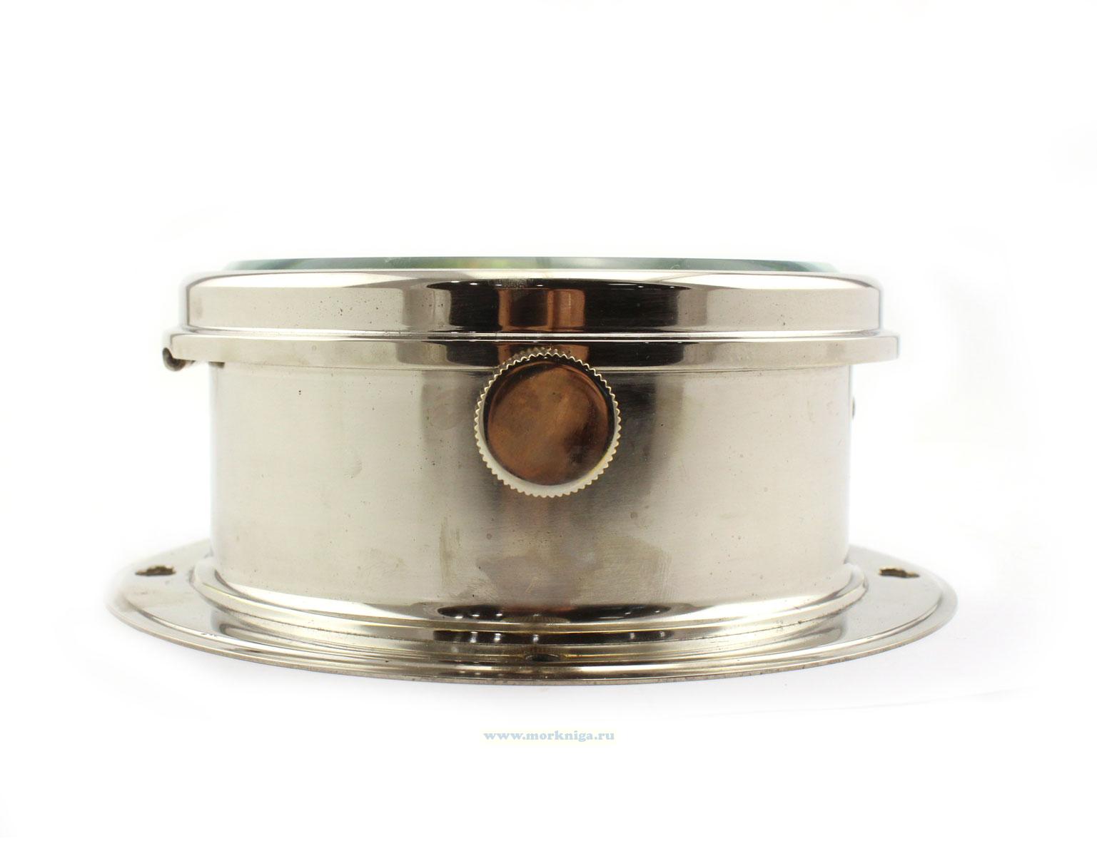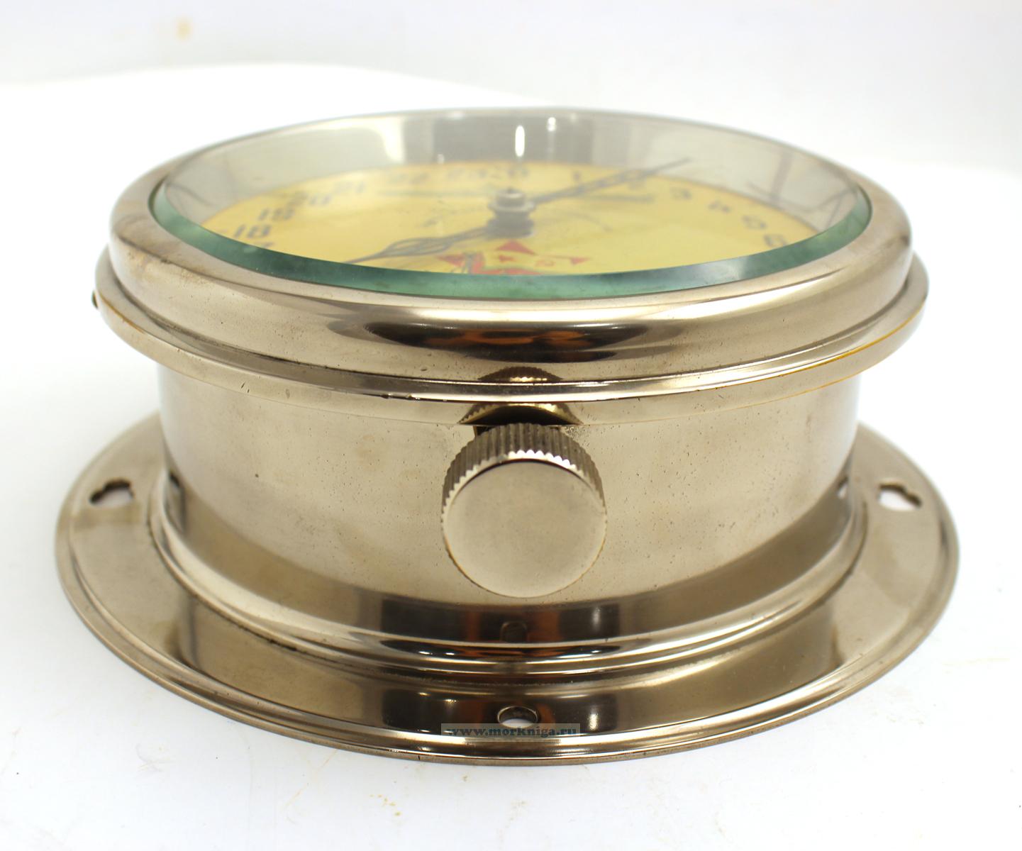 Часы 24-х часовые использовались на подводных лодках до середины 1960-х годов. Изготовлены в СССР на заводе Мореходных инструментов. Часы ходят и показывают точное время. Диаметр: 17 см
