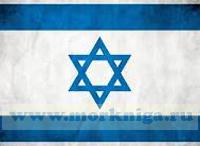 Флаг Израиля представляет собой белое прямоугольное полотнище с двумя горизонтальными синими полосами по краям и звездой Давида в центре.