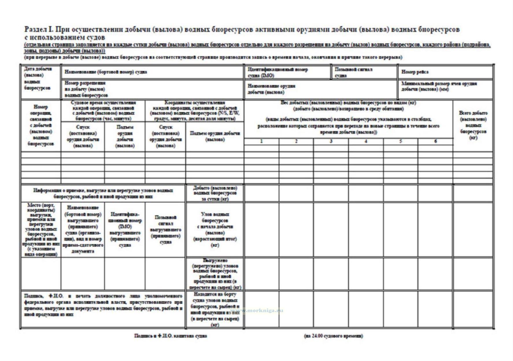 Раздел I. При осуществлении добычи (вылова) водных биоресурсов активными орудиями добычи (вылова) водных биоресурсов с использованием судов