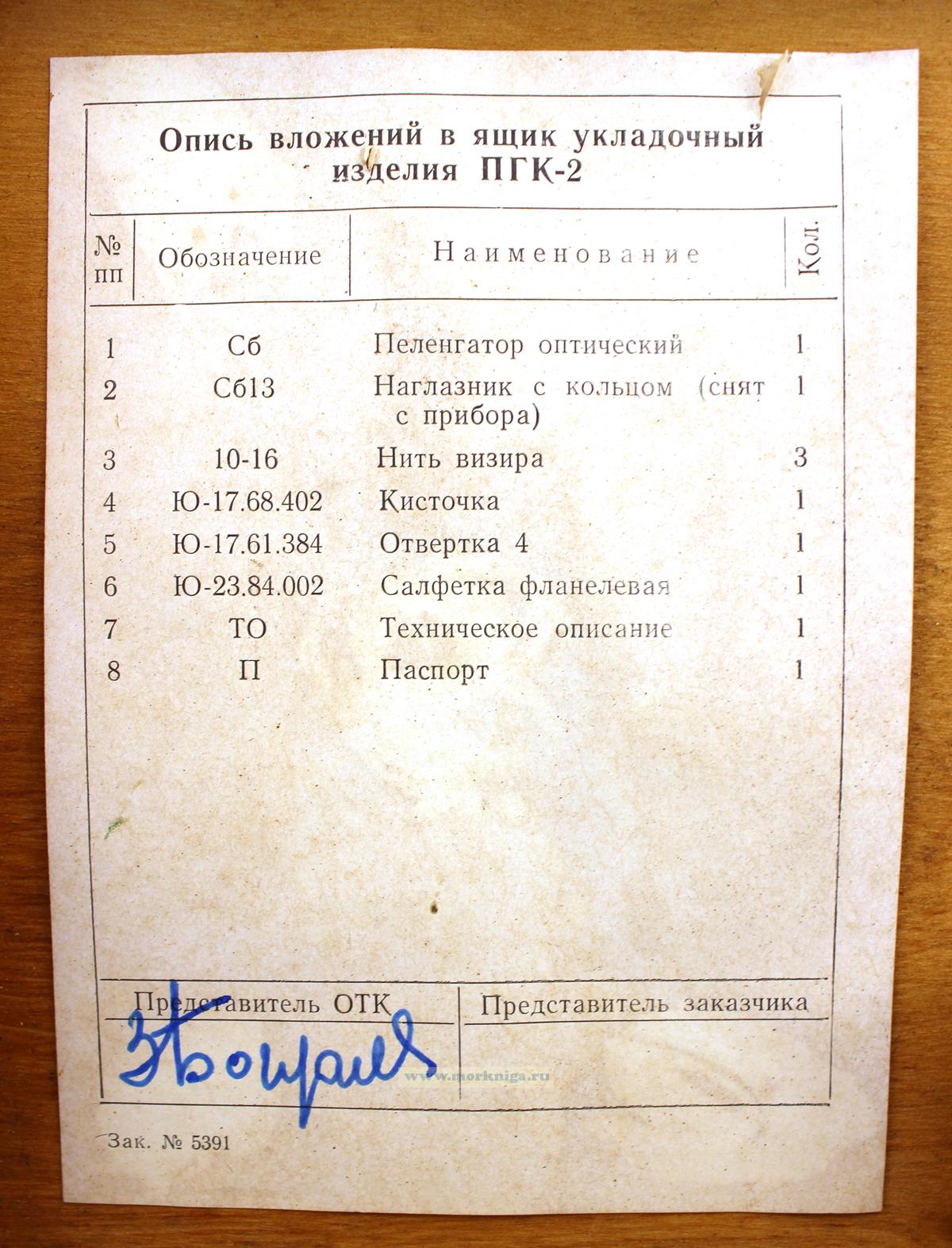 Оптический пеленгатор ПГК-2 предназначен для нахождения компасного пеленга относительно берегового предмета или небесного светила и представляет собой оптический монокулярный прибор, имеющий устройство для глубокого визирования.