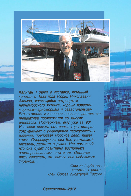 Капитан 1 ранга в отставке, яхтенный капитан с 1939 года Рюрик Николаевич Акимов, являющийся патриархом черноморского яхтинга, хорошо известен морякам-черноморцам и севастопольцам.