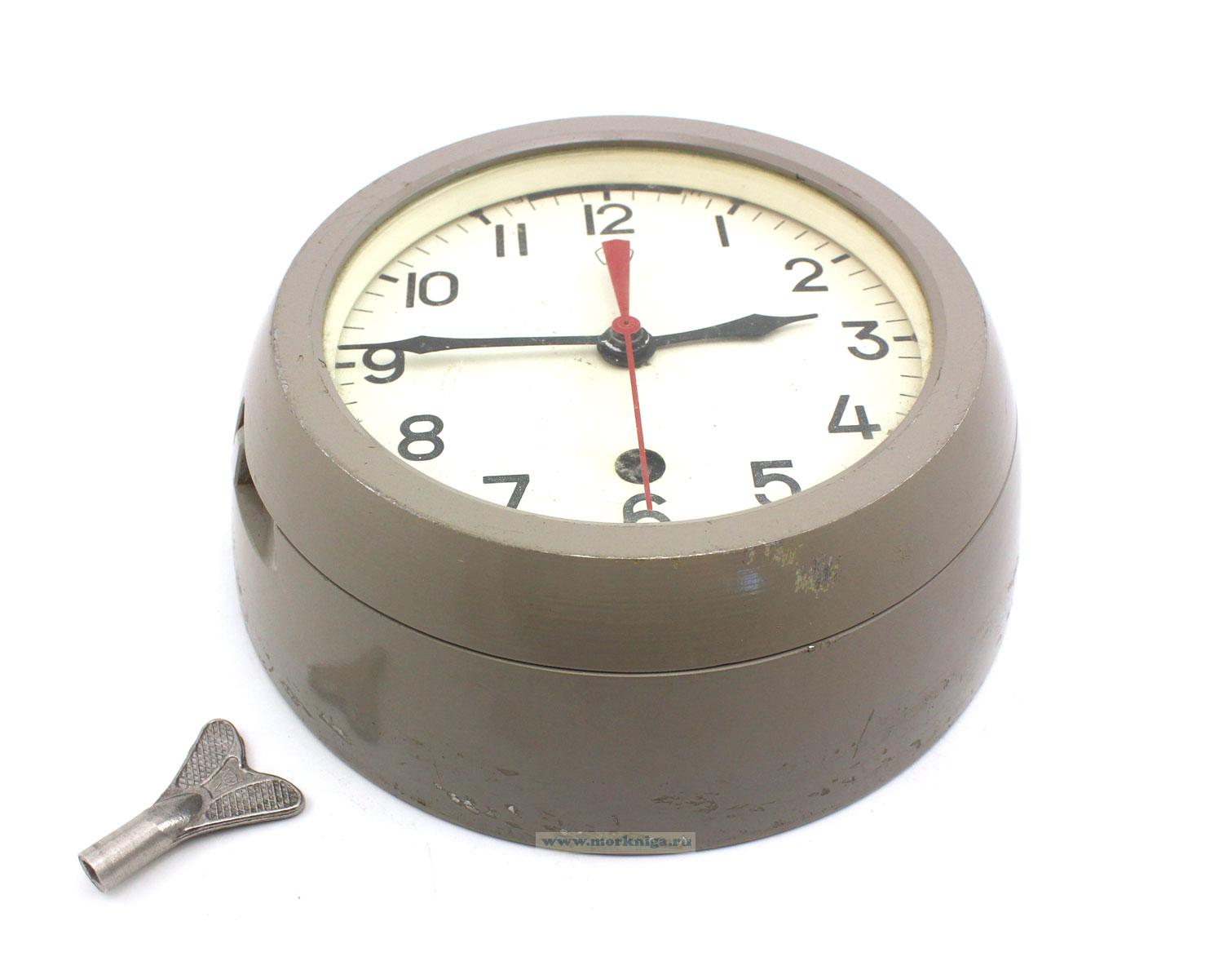 Часы механические, заводятся специальным ключом (четырехгранным). Часы каютные производства СССР.
