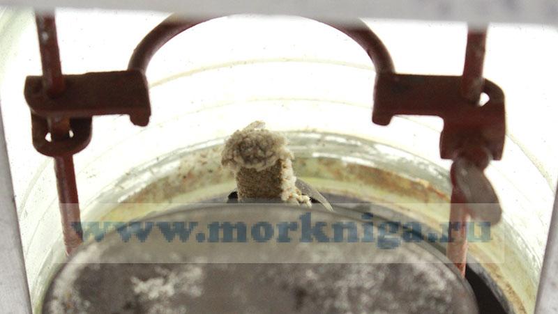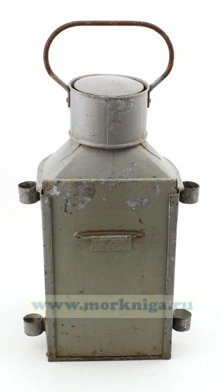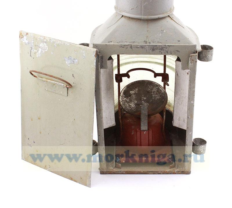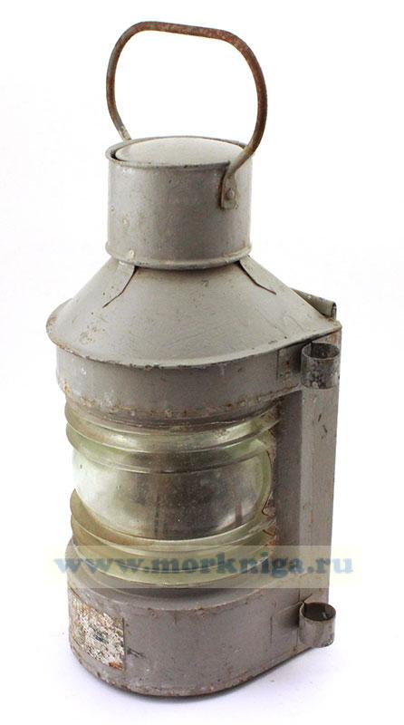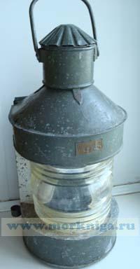 Фонарь топовый изготовлен в СССР. Применялся на парусниках и несамоходных баржах. В качестве источника света использутся керосиновая горелка. Стекло - линза Френеля.