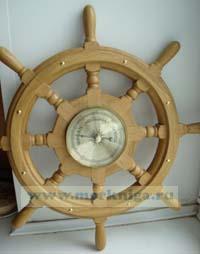 Изготовлен из дуба частным мастером из г. Севастополя. Ручная работа. Диаметр штурвала макс. 55 см. Барометр немецкий, очень точный.