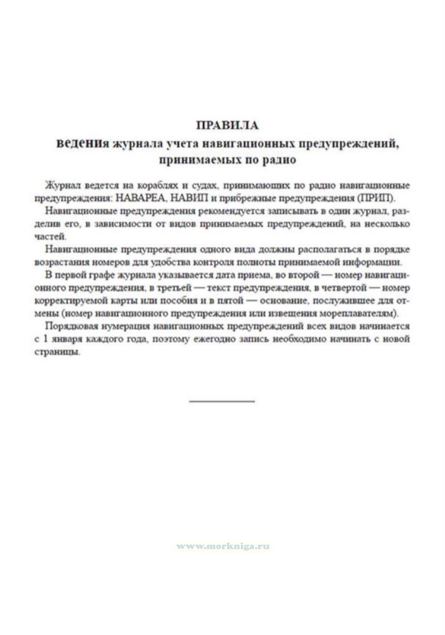 Правила ведения журнала учета навигационных предупреждений, принимаемых по радио