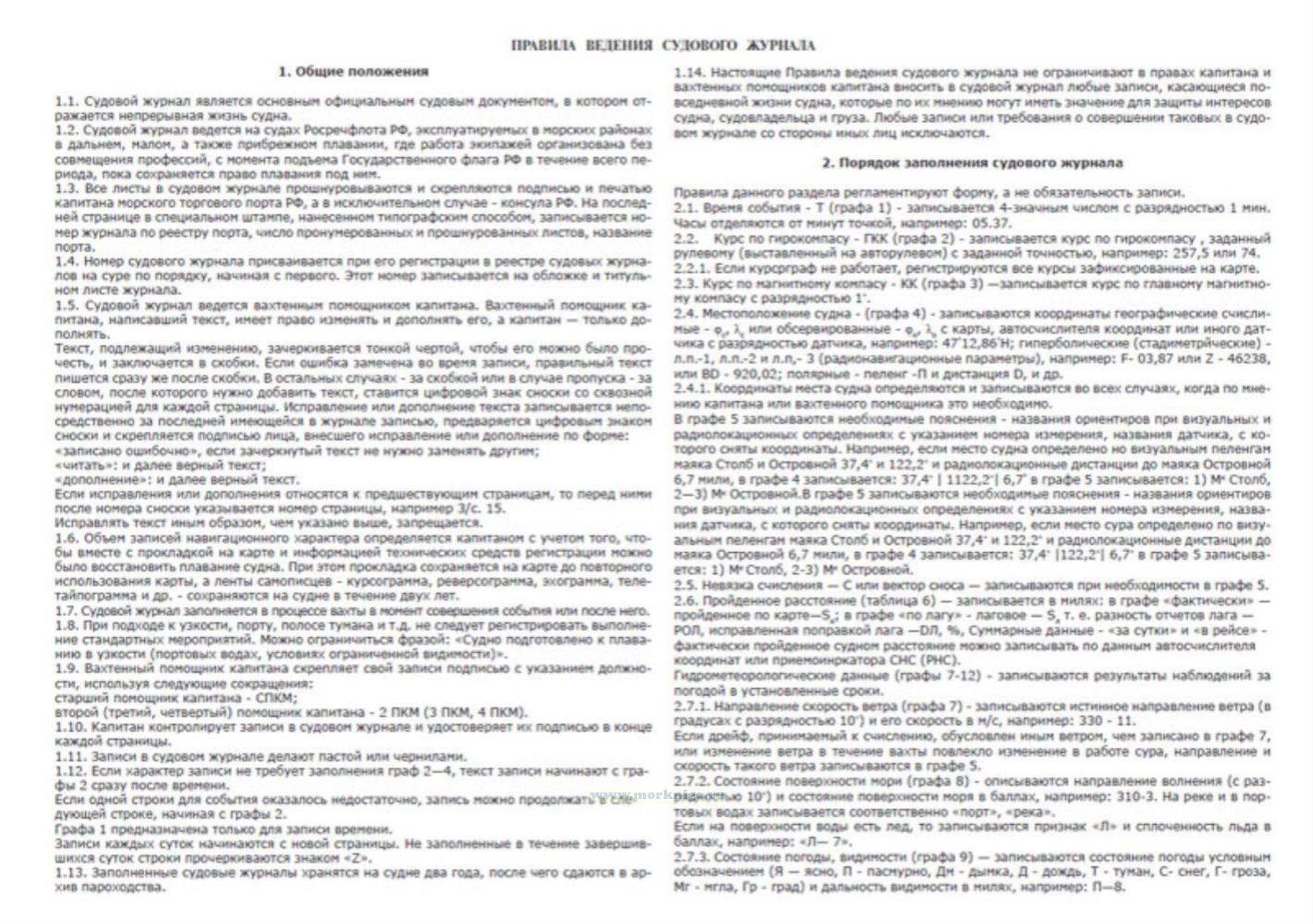 1.13. Заполненные судовые журналы хранятся на судне два года, после чего сдаются в архив пароходства.