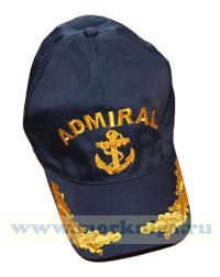 Цвет синий. Машинная вышивка. На бейсболке надпись "ADMIRAL" и адмиралтейский якорь. На козырьке дубы. Сделано в Севастополе.