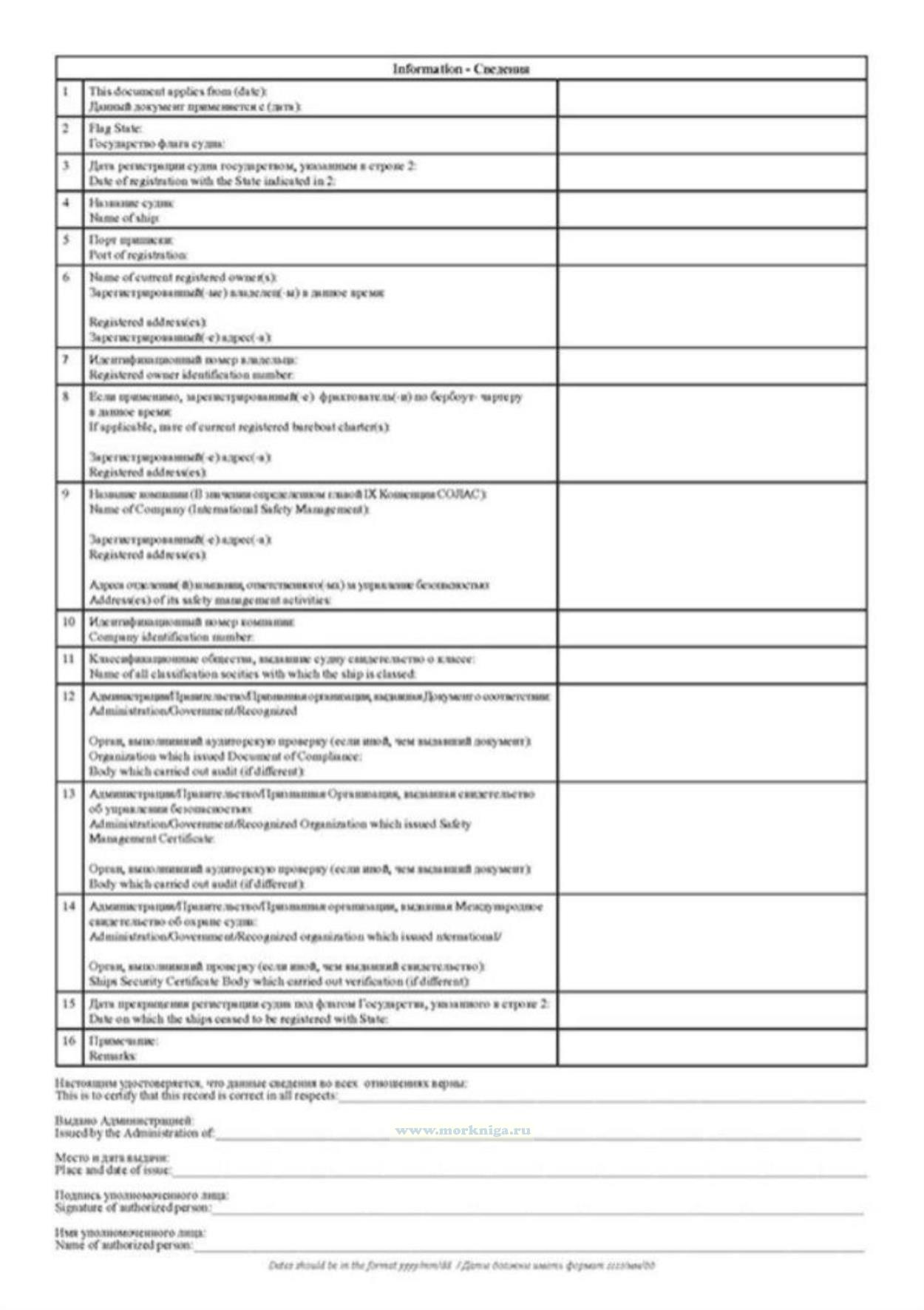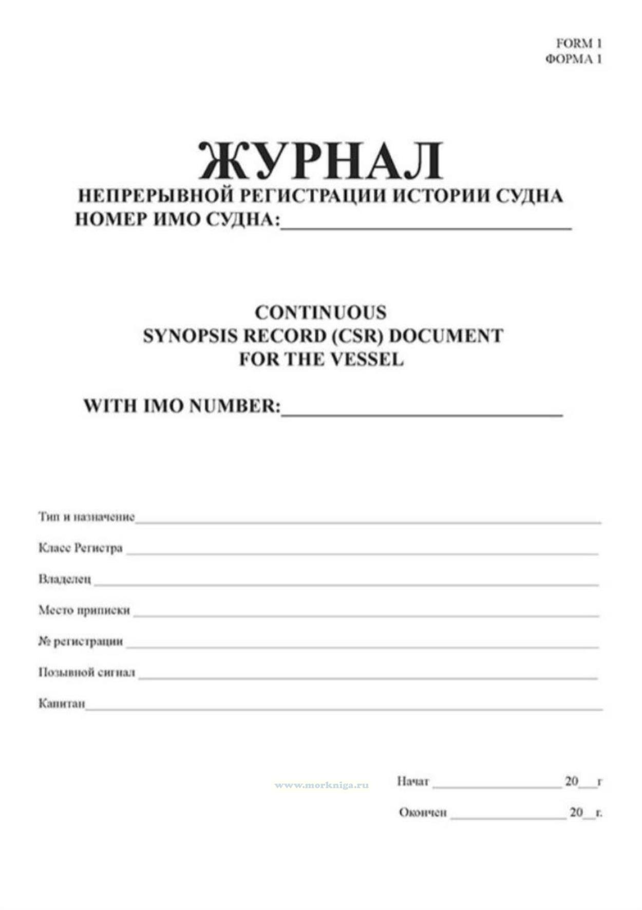 Форма журнала непрерывной регистрации истории судна и руководство по его ведению определена Резолюцией A.959(23) с поправками Резолюции MSC.198(80).