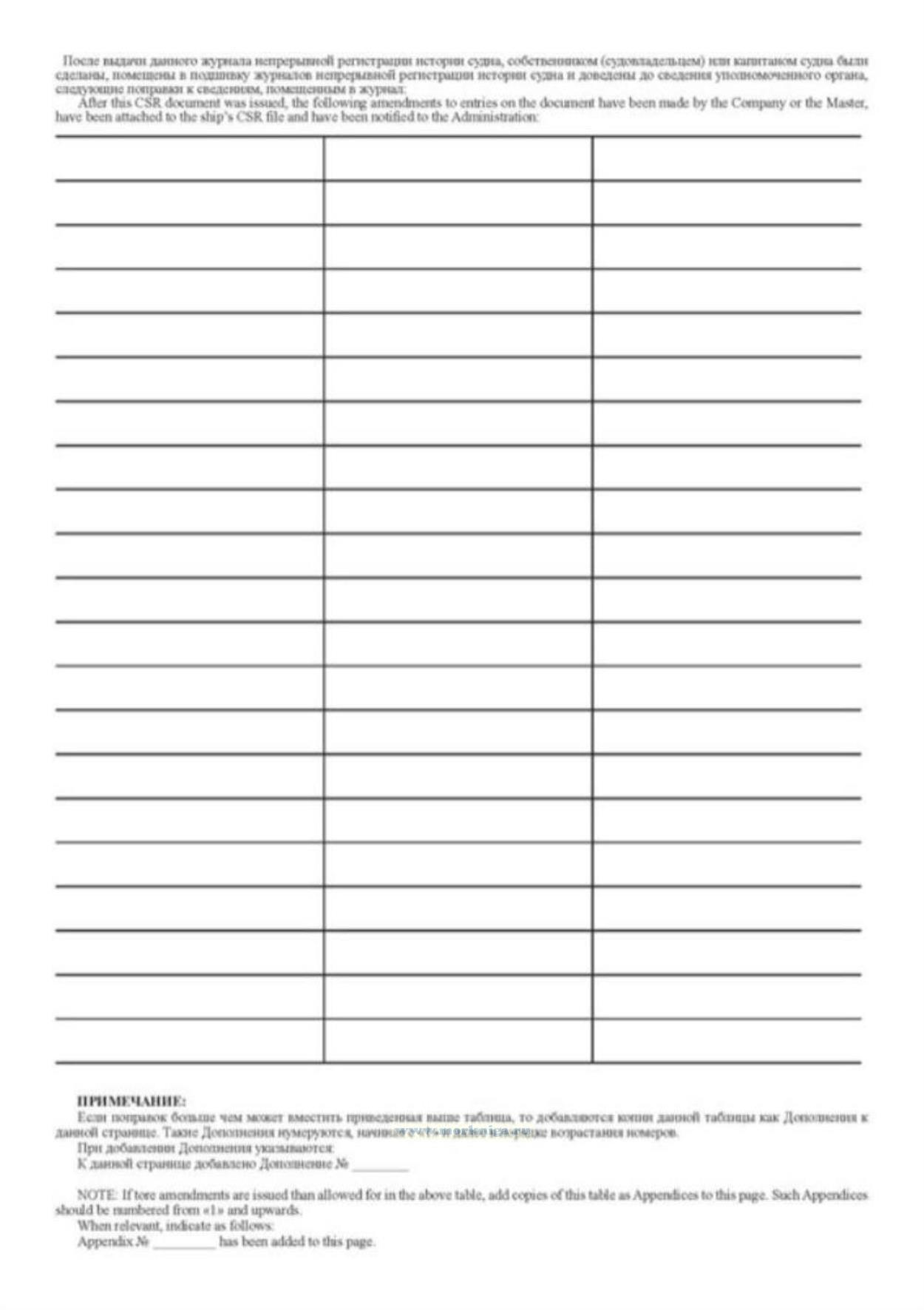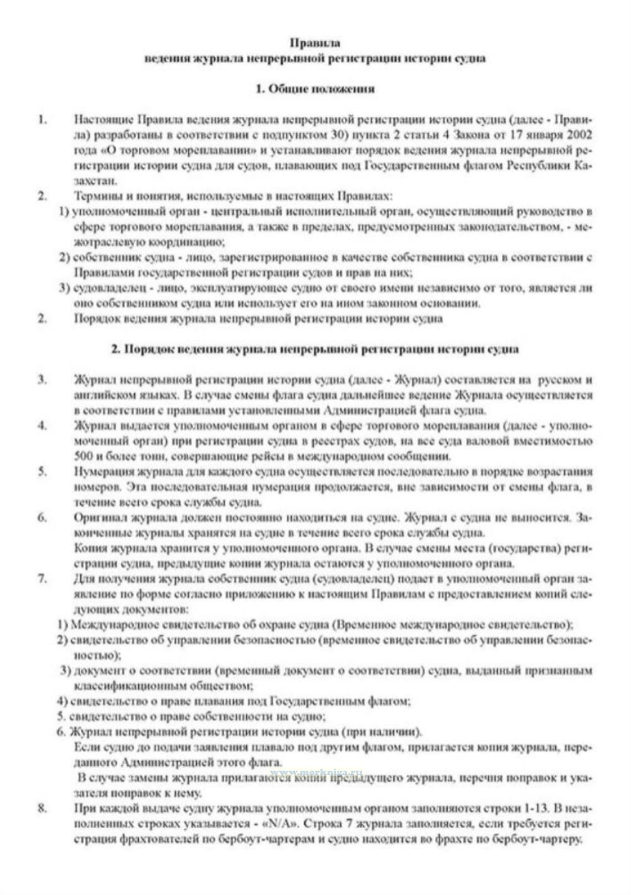 Журнал непрерывной регистрации истории судна составляется на русском и английском языках. В случае смены флага судна дальнейшее ведение Журнала осуществляется в соответствии с правилами установленными Администрацией флага судна.