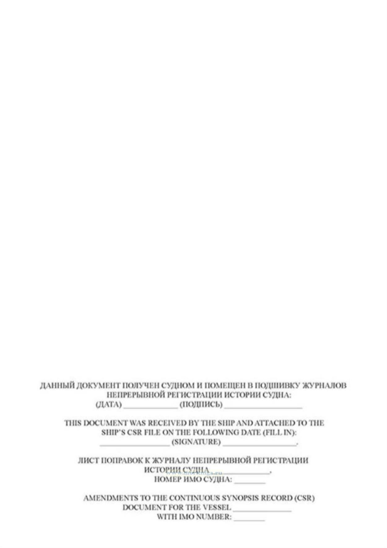 Журнал непрерывной регистрации истории судна (Форма 1)/Continuous synopsis record (CSR) document for the vessel (Form 1) содержит строки: